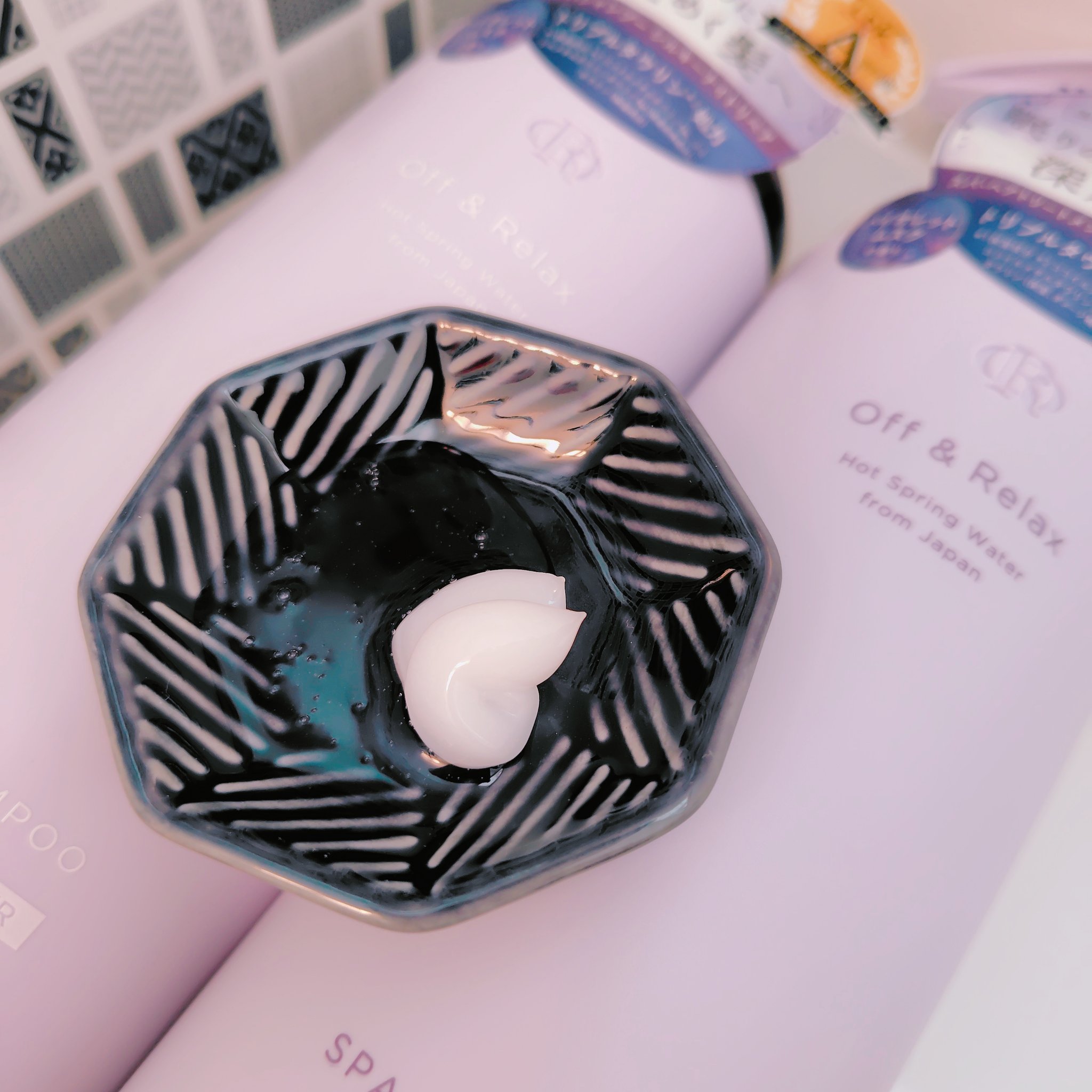 眠っている間に深層補修、シルクのように煌めく髪へ✨✨Off&Relax✨✨ トリプルタウリン配合し、髪と頭皮の汚れを優しく落とし、髪にハリ・コシを与えます。 バイオレットムスクの香りに包まれて癒されました🥰🤍🤍さらさらでふんわりな仕上がりに✨