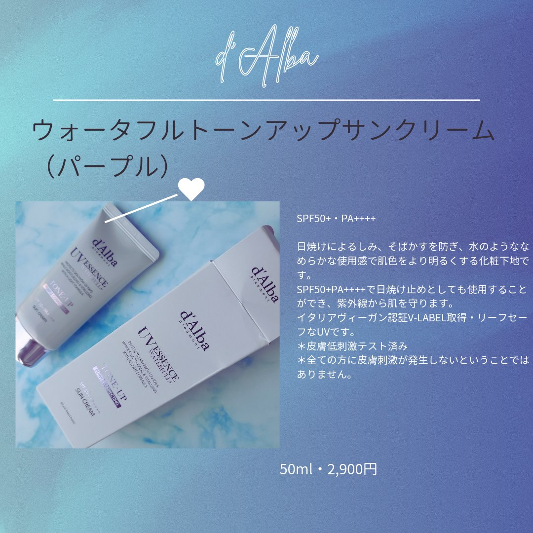ダルバ ダルバ ウォータフル トーンアップ サンクリーム(パープル) | 2,860円 |