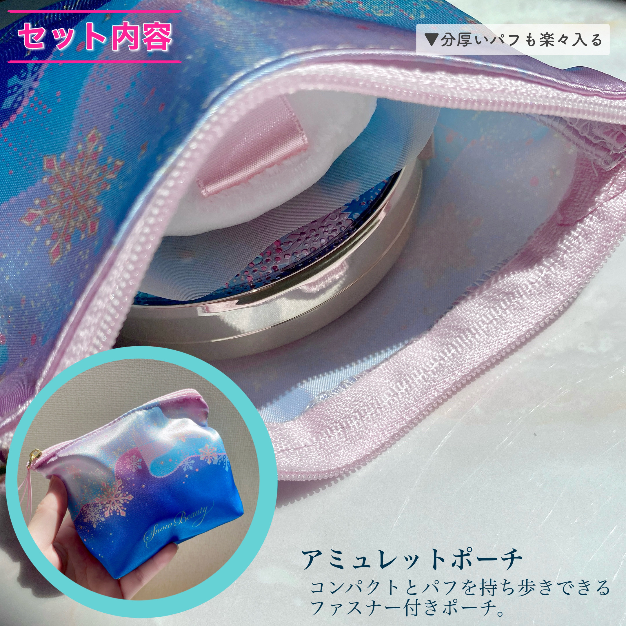 - 24時間、肌に願いを。 つけた瞬間、自然なカバー&つや感で、 明るく透明感のある肌に。 Poin1:美白+抗肌あれ有効成分W配合 美白しながら、肌あれやニキビをどちらも防ぐ! Poin2:透明感メイク効果 くずれにくく、くすみにくい! 雪のような透明感のある肌が続く。 <セット内容> ・コンパクト本体 ・フェイスパウダー ・アミュレットポーチ ・スムースフィットパフ ・なめらかソフトパフ *美白化粧品は、メラニンの生成を抑え、シミ・そばかすを防ぎます。