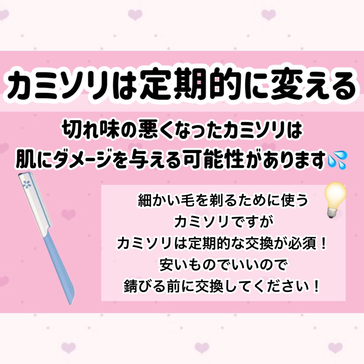 ムダ毛処理ってお風呂でしない方が良いんだー! お風呂でしてた、、 これからは別の場所でするねー! 剃り跡とか気になるからケアしっかりする!! 夏休みプール行きたいから気をつける!!!
