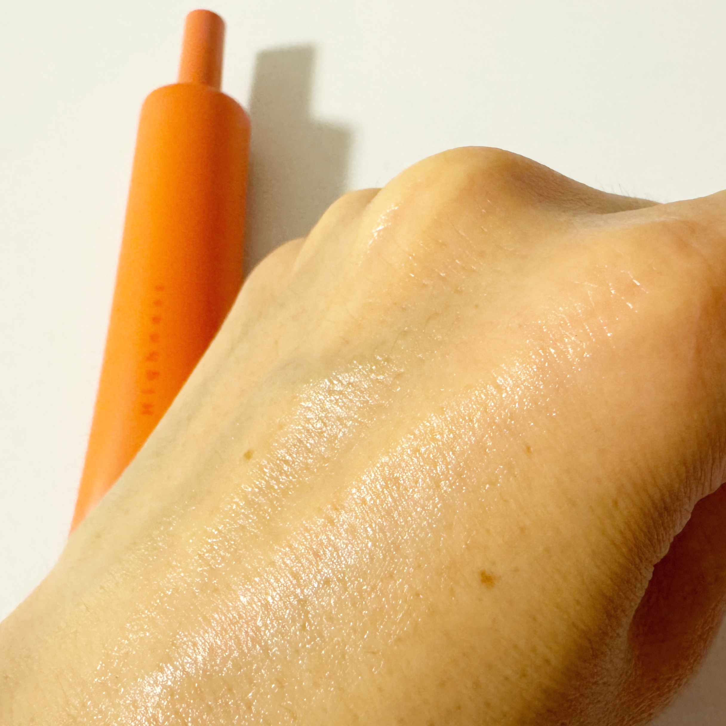 部分的に塗布するだけで、どの角度から見ても肌全体に光を放つような、ツヤと明るさをまとえるカラーパウダーなのだそう。 粒子が細やかでサラッとしています。 薄づきなので、おてもやんチークにならず、ツヤのあるナチュラルキレイな頬に仕上がりました。 光の透過性が高いパールが高配合されているそうです。