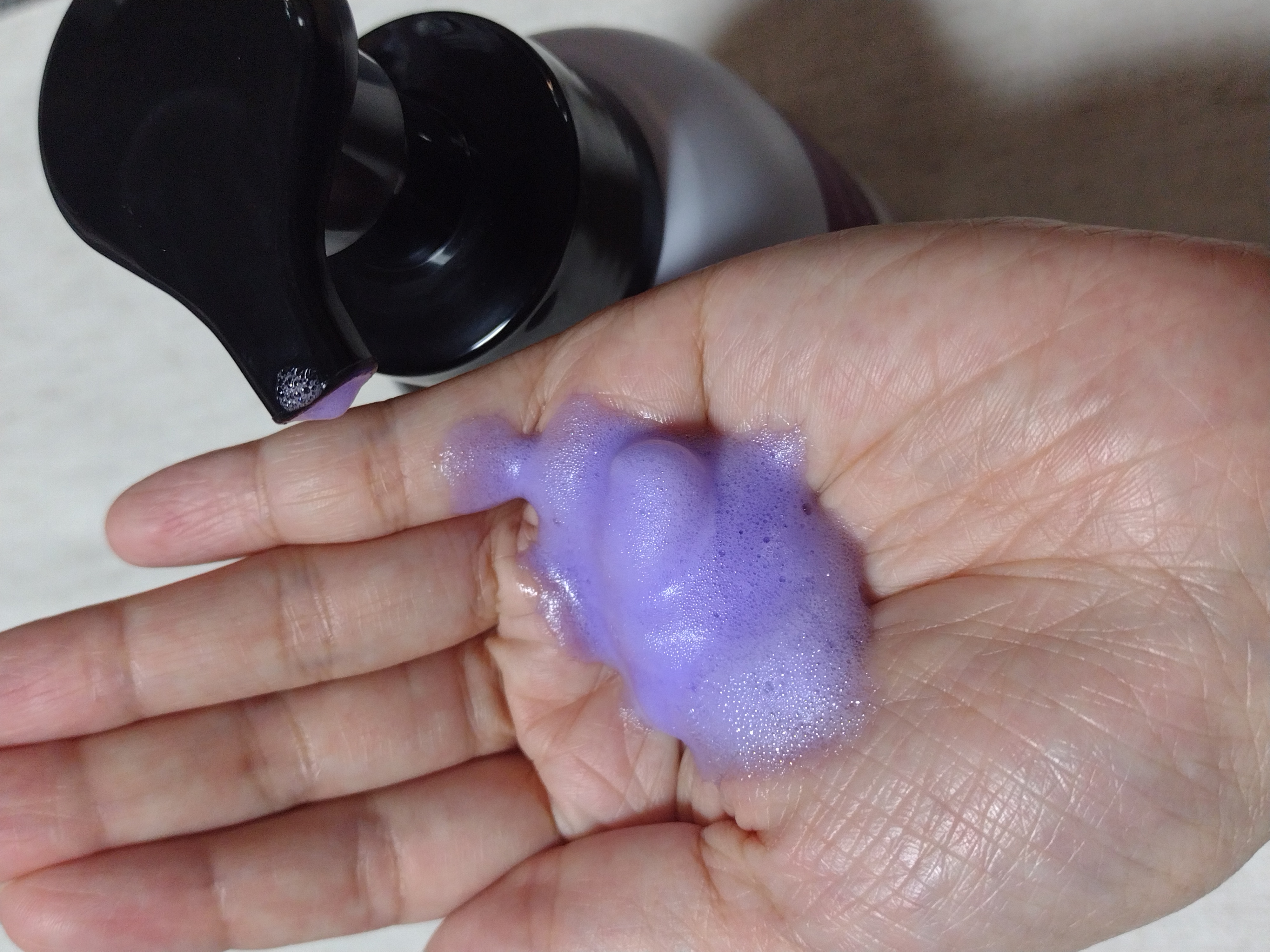 エブリカラーフォームシャンプー→泡立て不要な泡タイプ カラーフォームシャンプー。泡タイプのため、泡が髪全体をムラなく包み込んでくれます。ヘアカラーやブリーチなどのダメージにお悩みの方にもチェックしてみてほしい→今回使ったのは<ピンク>。出てく...