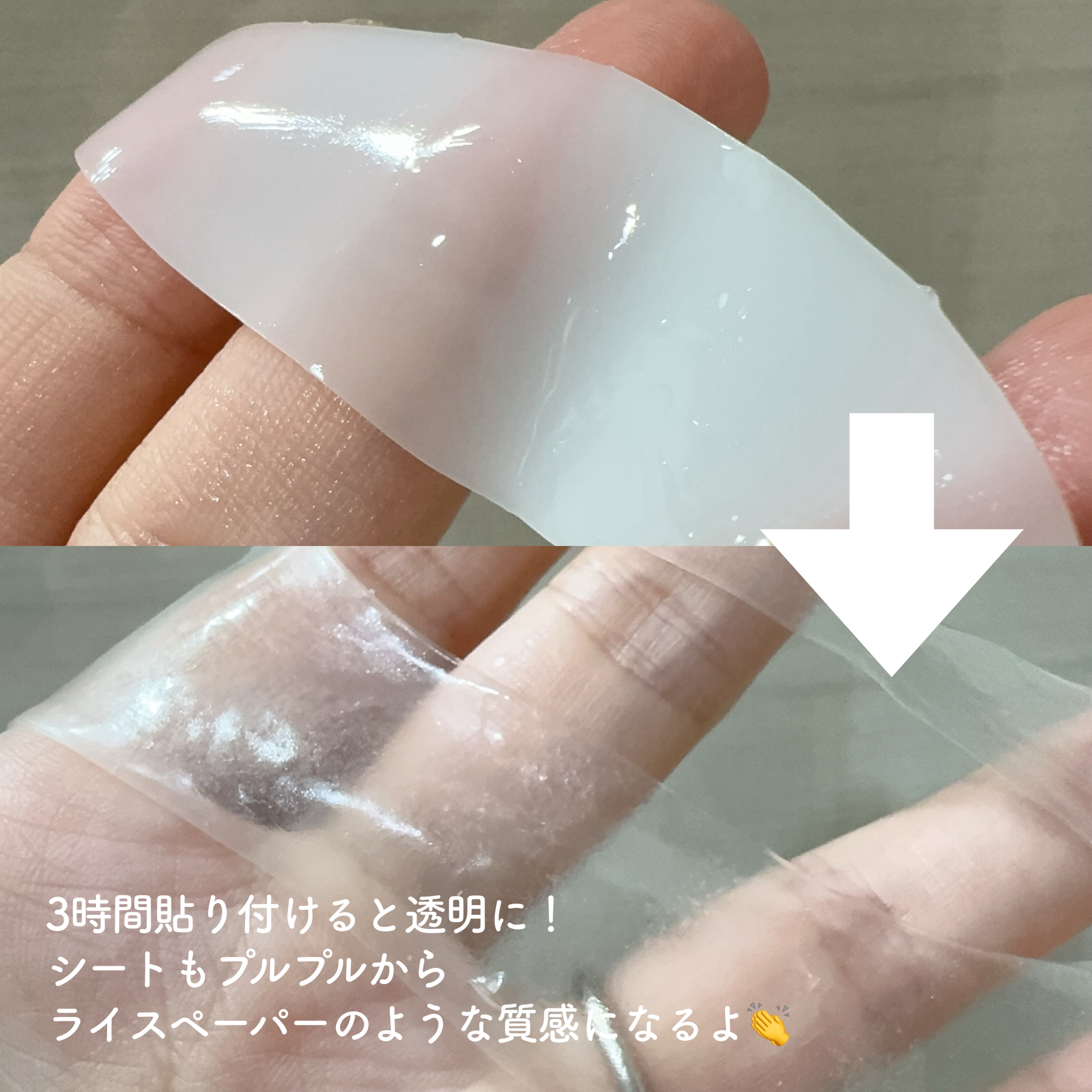 ハイドロゲルタイプのマスク!! 最低3時間使用のスリーピングパック✨ 時間の経過とともに、美容液がお肌に吸収され 乳白色だったシートが透明に変わります。 お肌に貼り付けた時のひんやり感が気持ち良いです♫ 朝起きて剥がす時が私は楽しいです♫