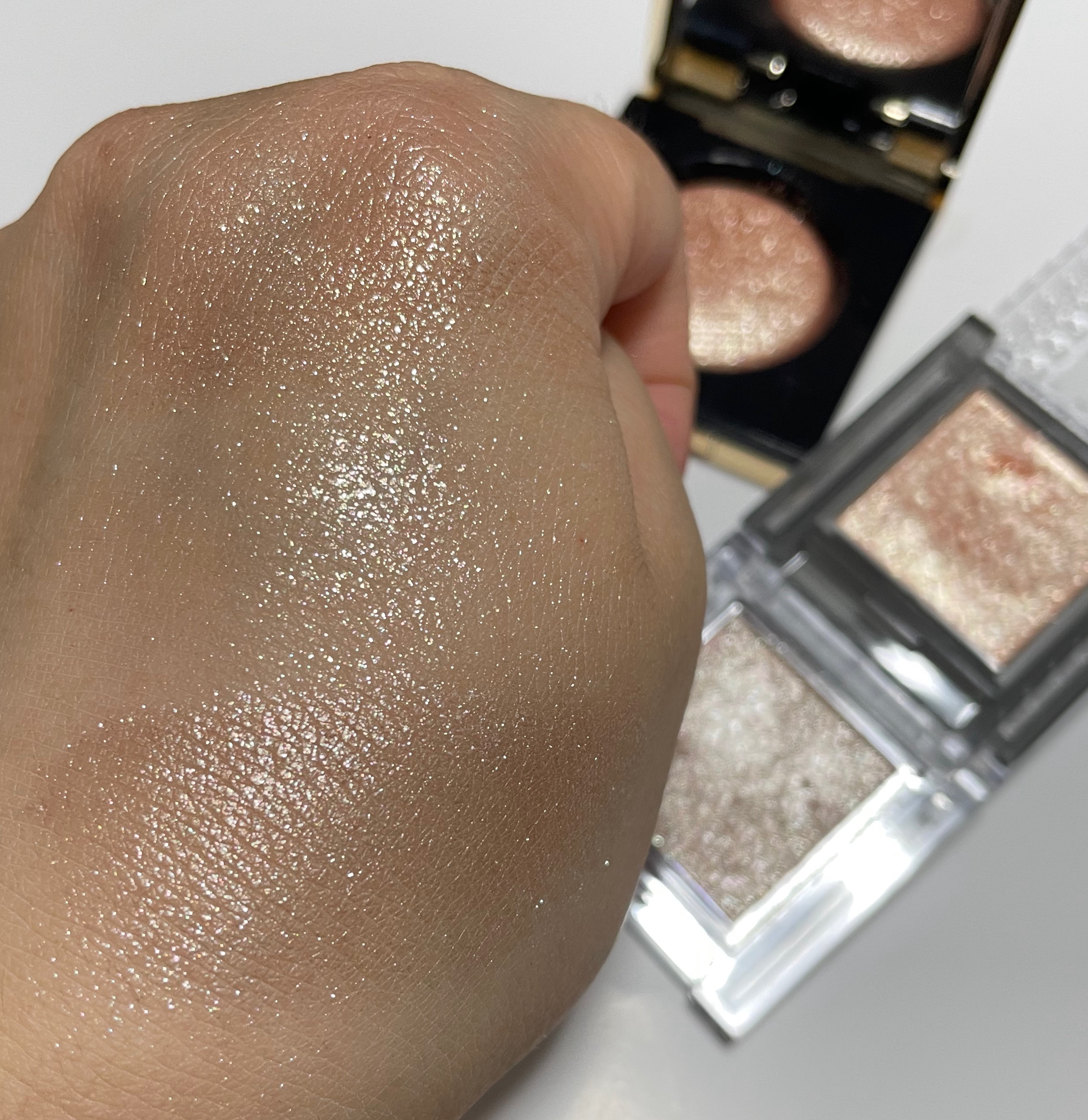 ★ベージュラメアイシャドウ比較★●BOBBIBROWNリュクスアイシャドウムーンストーン●CEZANNEシングルシャイニーアイシャドウ01 ムーンジェムラメのキラキラ感は遠目だとあんまり変わらないです。CEZANNEの方はラメ落ちしますがBO...