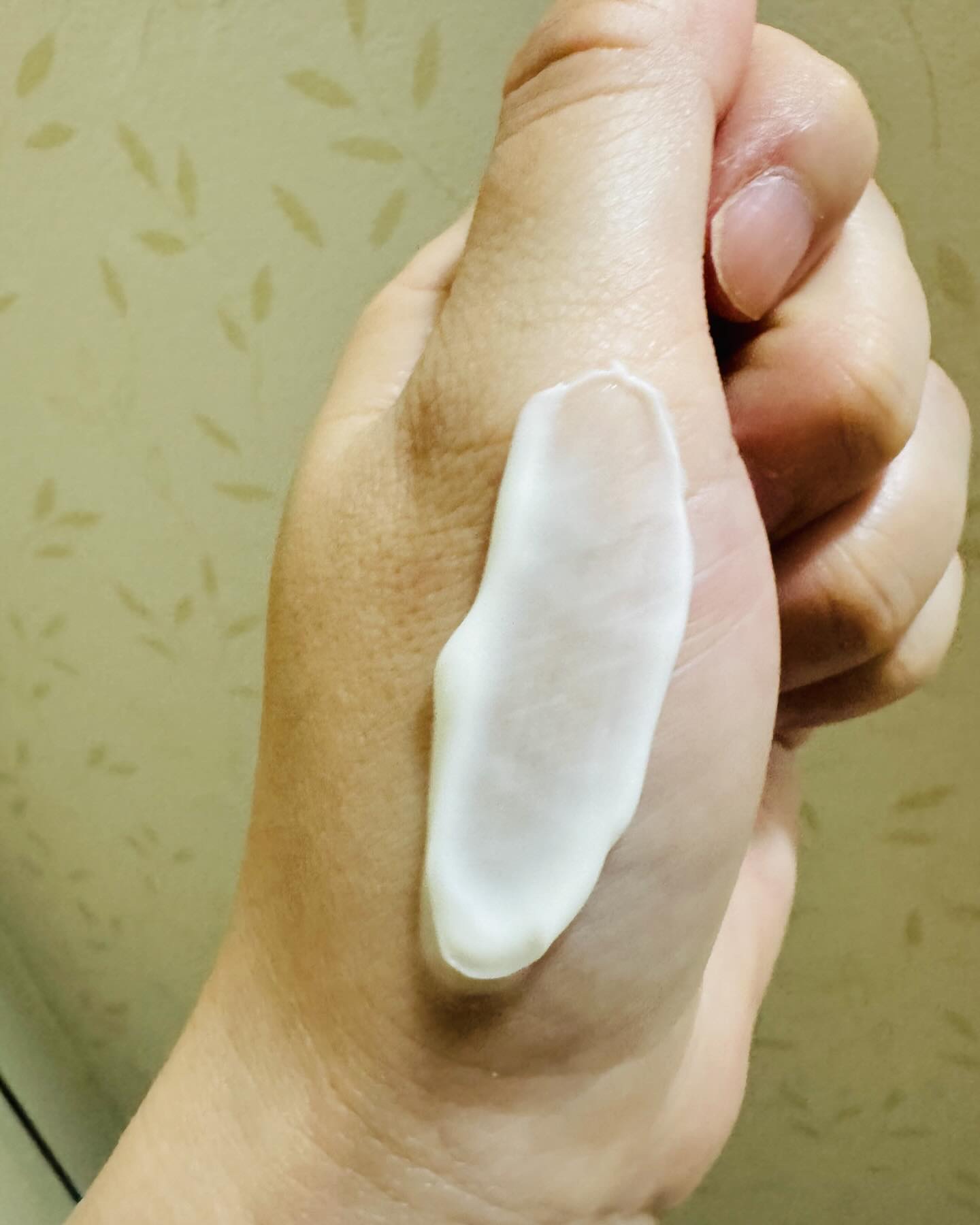 まず容器が初めてみるタイプで驚きました🫢 先にはポンプがついているではありませんか? 多めにクリームがでるのを防ぐこともできますし、 チューブタイプの先よりも衛生的に使うことができる印象を受けました。 テクスチャーはとろけるようなクリーム なめらかでしっとり べたべたしにくいのも嬉しいです☺️