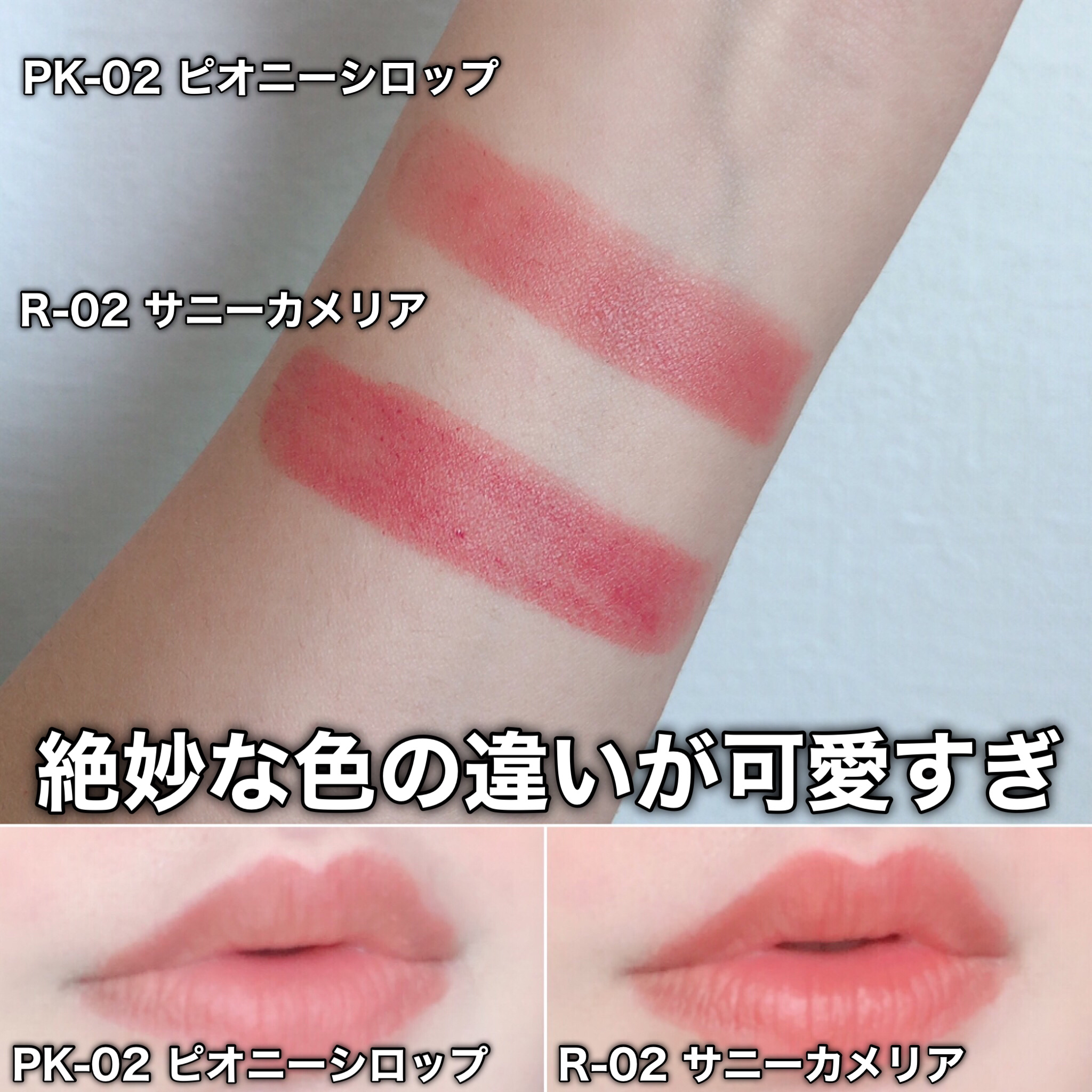 スルっと塗れる柔らかめな質感 乾燥しにくいですが、何度も塗り直す場合は保湿した方がいいと思います…! ソフトマットな仕上がりで、マットリップ苦手でも使いやすそうです◎ R-01は柔らかいレッドブラウン カラバリはくすんだ色が多く、おしゃれな色ばかりなのでおすすめです☻