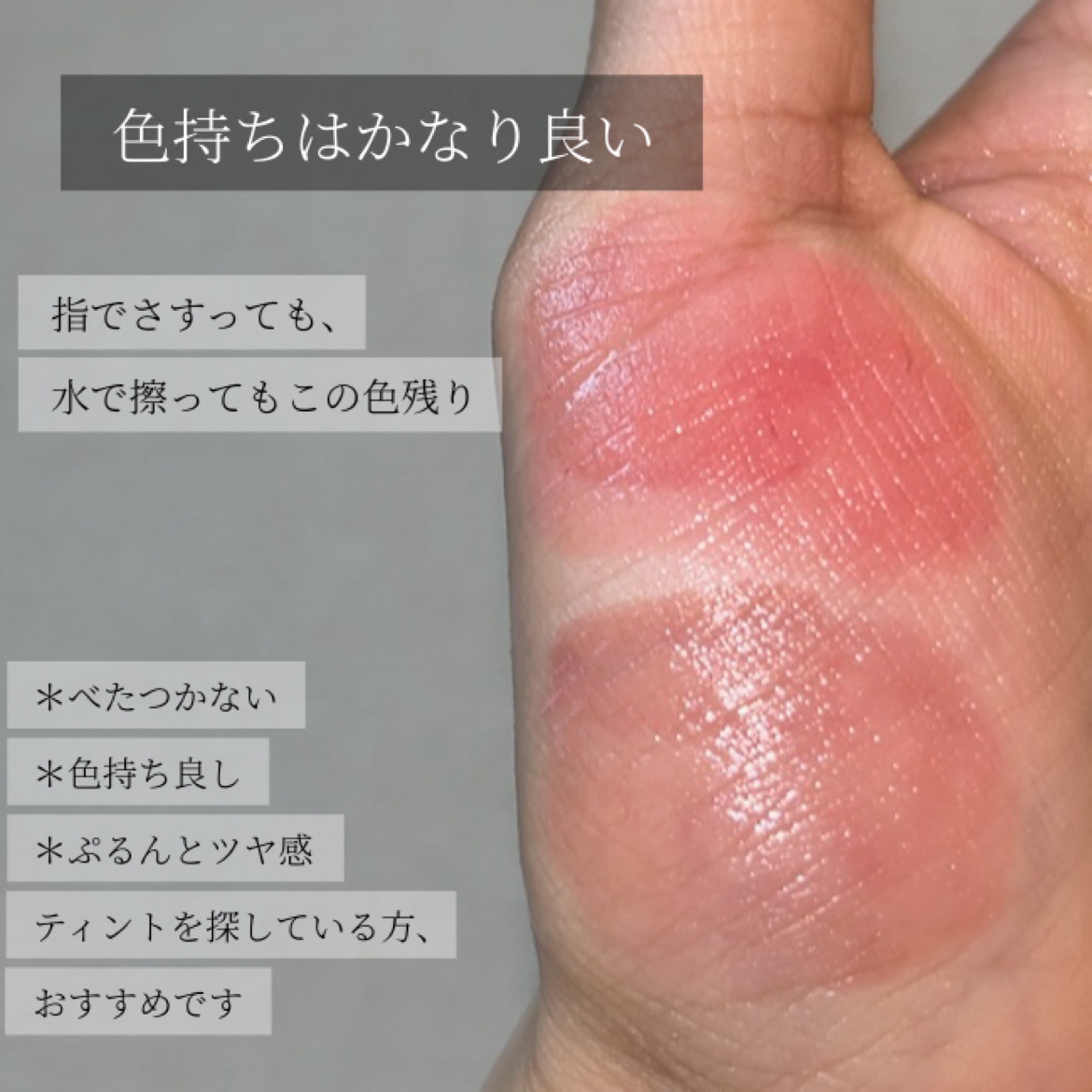| 口紅・グロス・リップライナーランキング第40位 | 乾燥しにくく、艶感をキープしてくれて、ティント特有の色持ちも良く、ぷるっとしたジューシーな唇に仕上がります | 詳細を見る | |