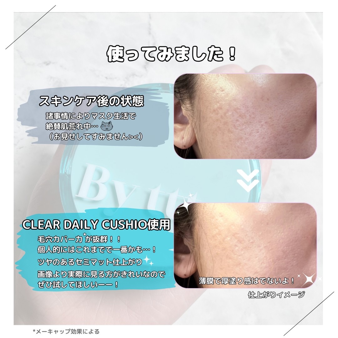 Byttt.@by_ttt_CLEARDAILYCUSHIONPUREピュア💐LIPCAREESSENCE💐ギフティティングでいただきました🎁💫クッションファンデは素肌感×ツヤが美しいセミマット💫リップはマイルドな刺激と保湿感で、唇を立体感的...