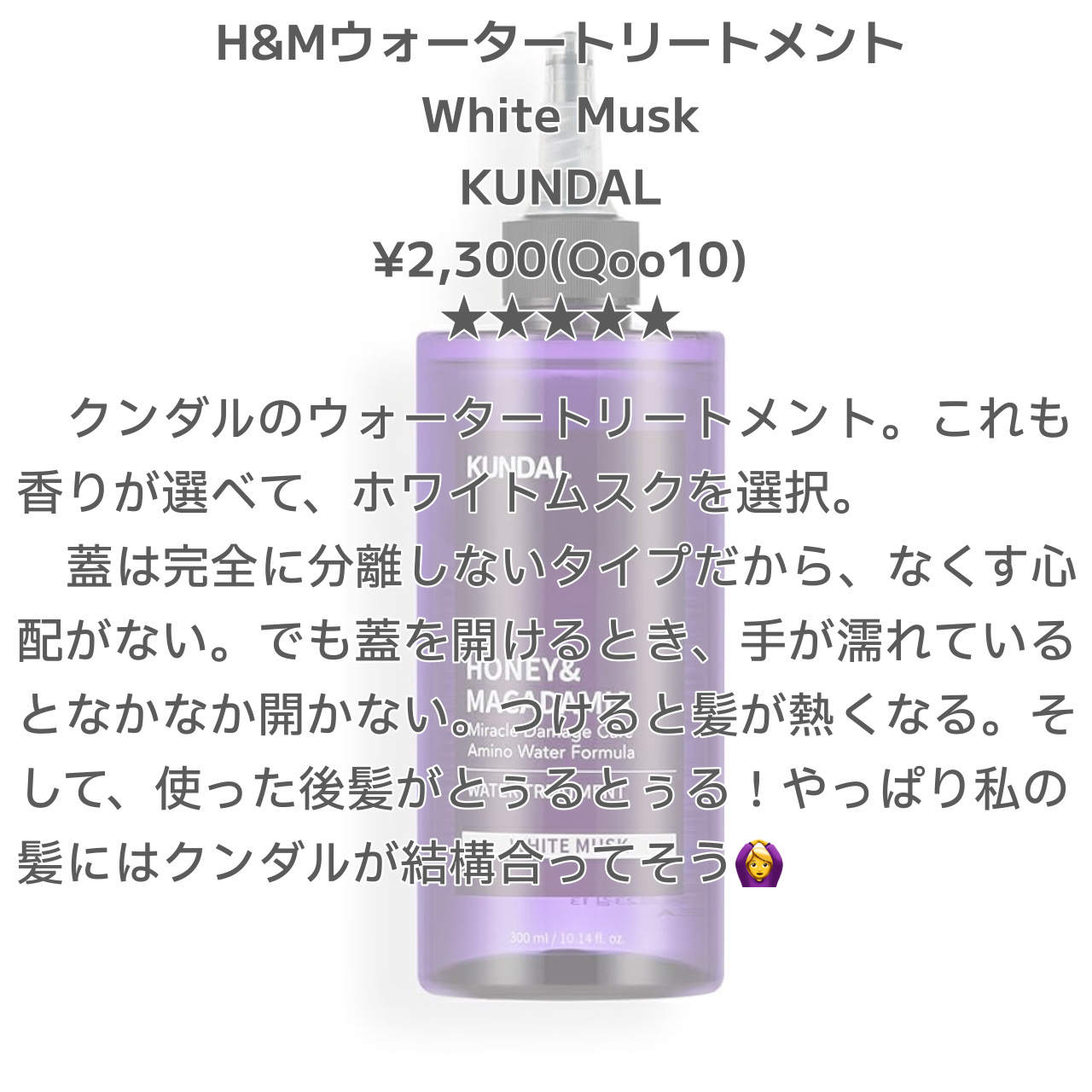 | ヘアケア・スタイリングランキング第128位 | 濃厚なテクスチャーで、髪1本1本に行き届くような感じがしました😆🎶 | 詳細を見る | |