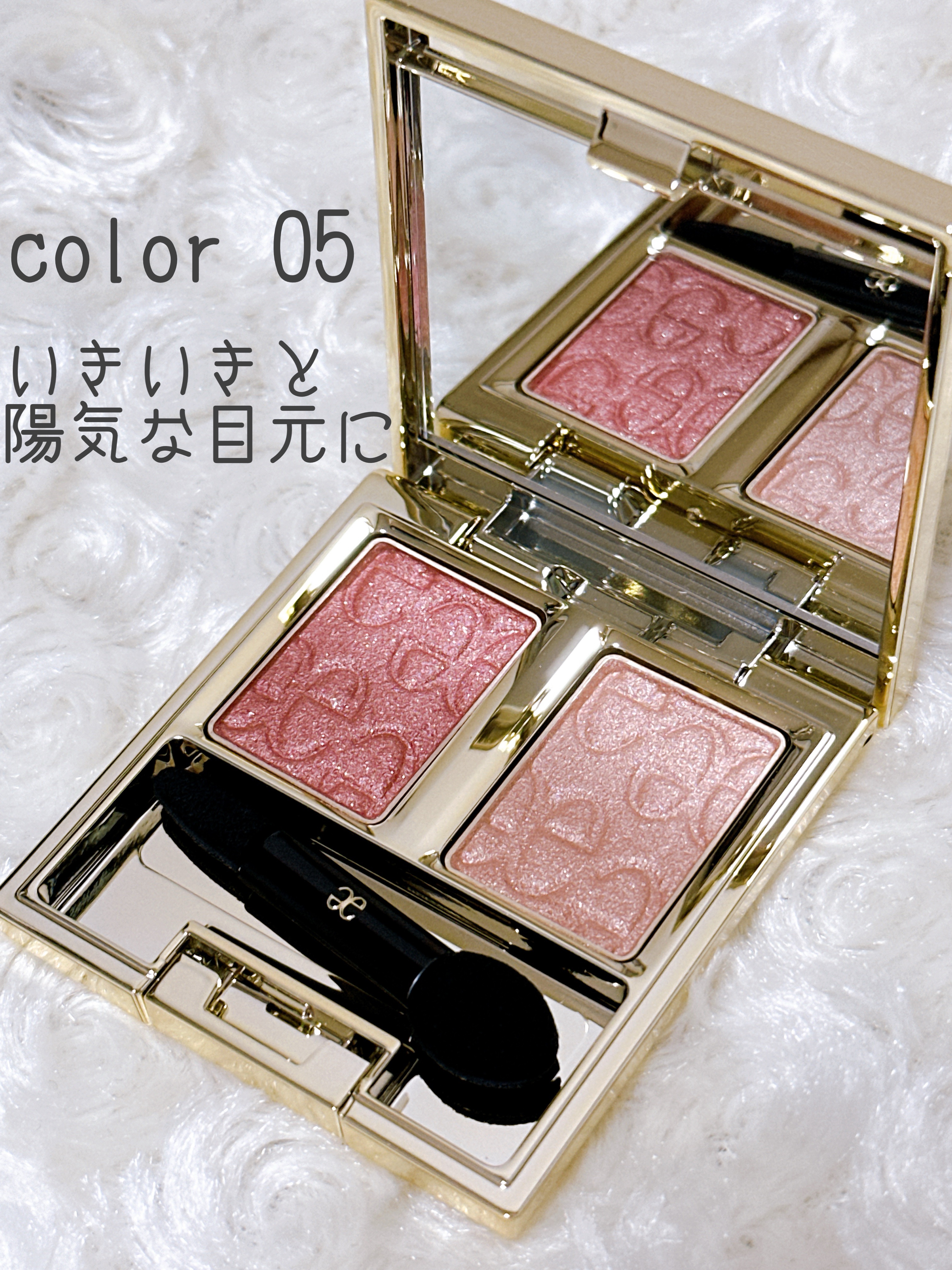- ひとぬりで絶妙なグラデーション。 美しくとけ合う2色のアイカラー どう重ねても今っぽい。どれを選んでも私っぽい。まぶたでとけ合う2色のアイカラー。 気分のままに彩るだけで目もとの立体感も、肌との一体感も、美しく完成。 グラデーションをもっと楽しくもっと簡単に。