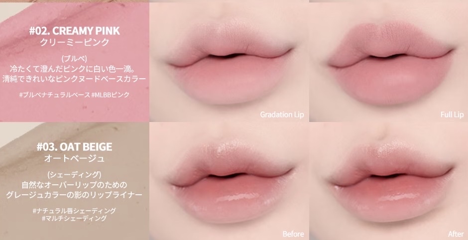 - パーソナルカラーを考慮したカラーで、オーバーリップ&リップベースとして使いやすいリップペンシル。 なめらかな塗り心地で簡単にグラデーションできるテクスチャ。 塗った瞬間にフィットし、長時間仕上りが持続します。チーク・アイメイクとしても使用可能です。 2025年10月1日 全国のPLAZA・ショップイン・アインズ&トルぺにて順次発売 カラー展開(01.02.03.06.07.08.12.19.20.21)(一部店舗除く)
