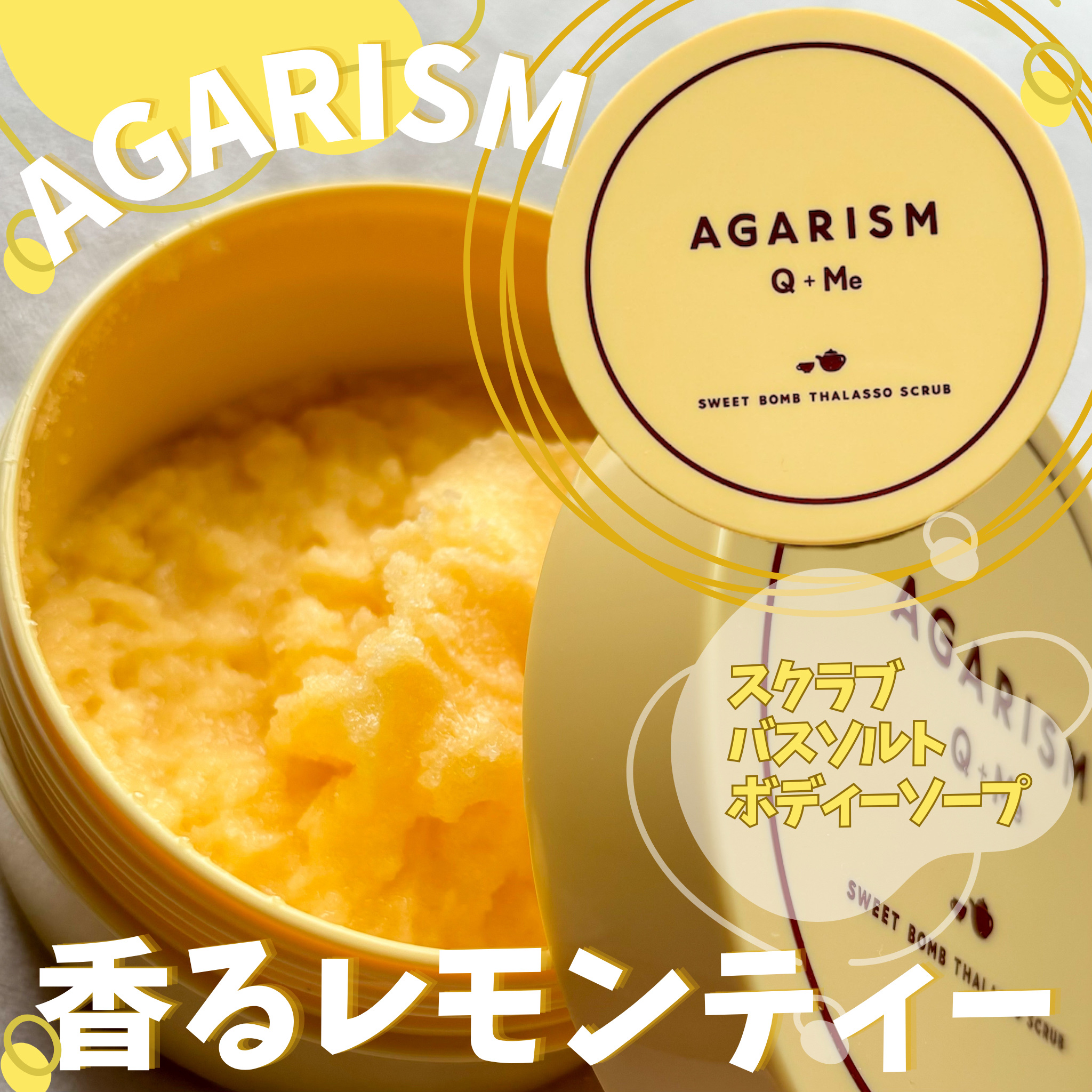 商品詳細情報AGARISM Q+Me スウィートボムタラソスクラブレモンティーの香り