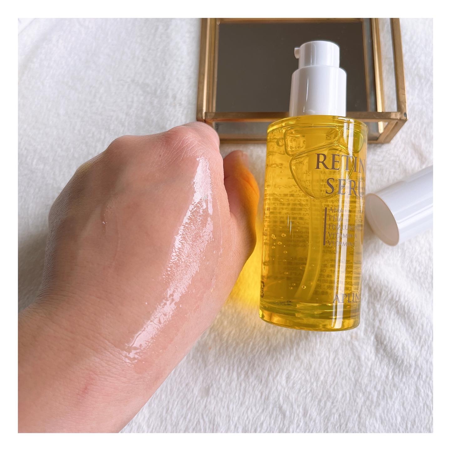 APLIN レチノールセラム。ポンプタイプで使いやすいです。無香料です。少し黄色くて柔らかでさらっとしたテクスチャー。ややとろみはあるものの肌にすぐ馴染みやすいです。べたつかずみずみずしくてさらっとした仕上がりになりました。保湿力は控えめな方...