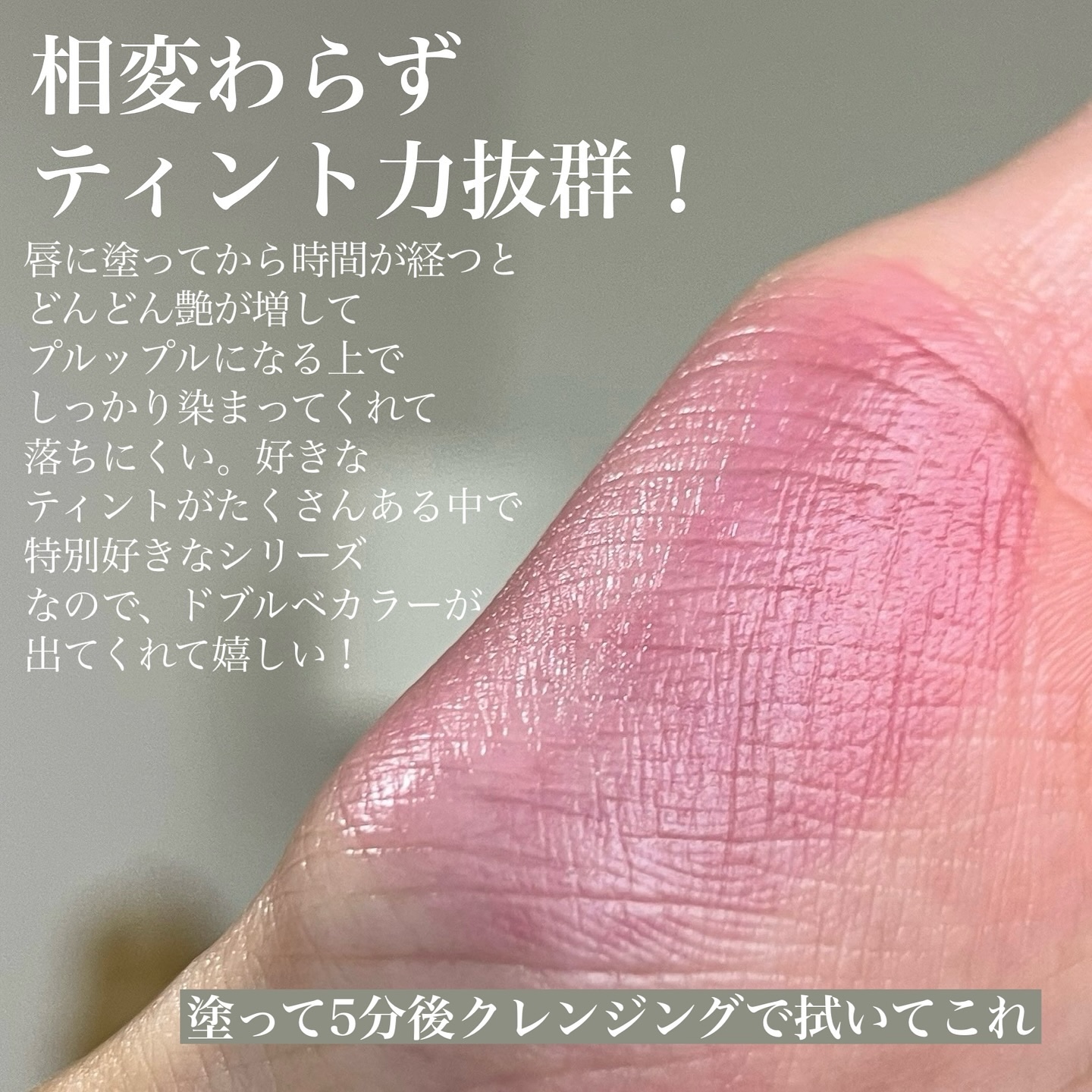 もーーーまずパッケージが可愛すぎるよね😢❤️❤️ 迷いなく全色買ってしまったよ…! 既存のジューシーラスティングティントに比べて ⚪︎サラッとしたリキッド ⚪︎やや薄づきな発色⚪︎艶々? 個人的にはロムアンドでは 最近こそ出るようになったけど ブルベ向きのカラー(特にサマー)でドンピシャが あんまり無いなあと思っていたので、 今回とっっても5〜8番が可愛くて ひじょーーーーーーに!満足しております💪❤️❤️