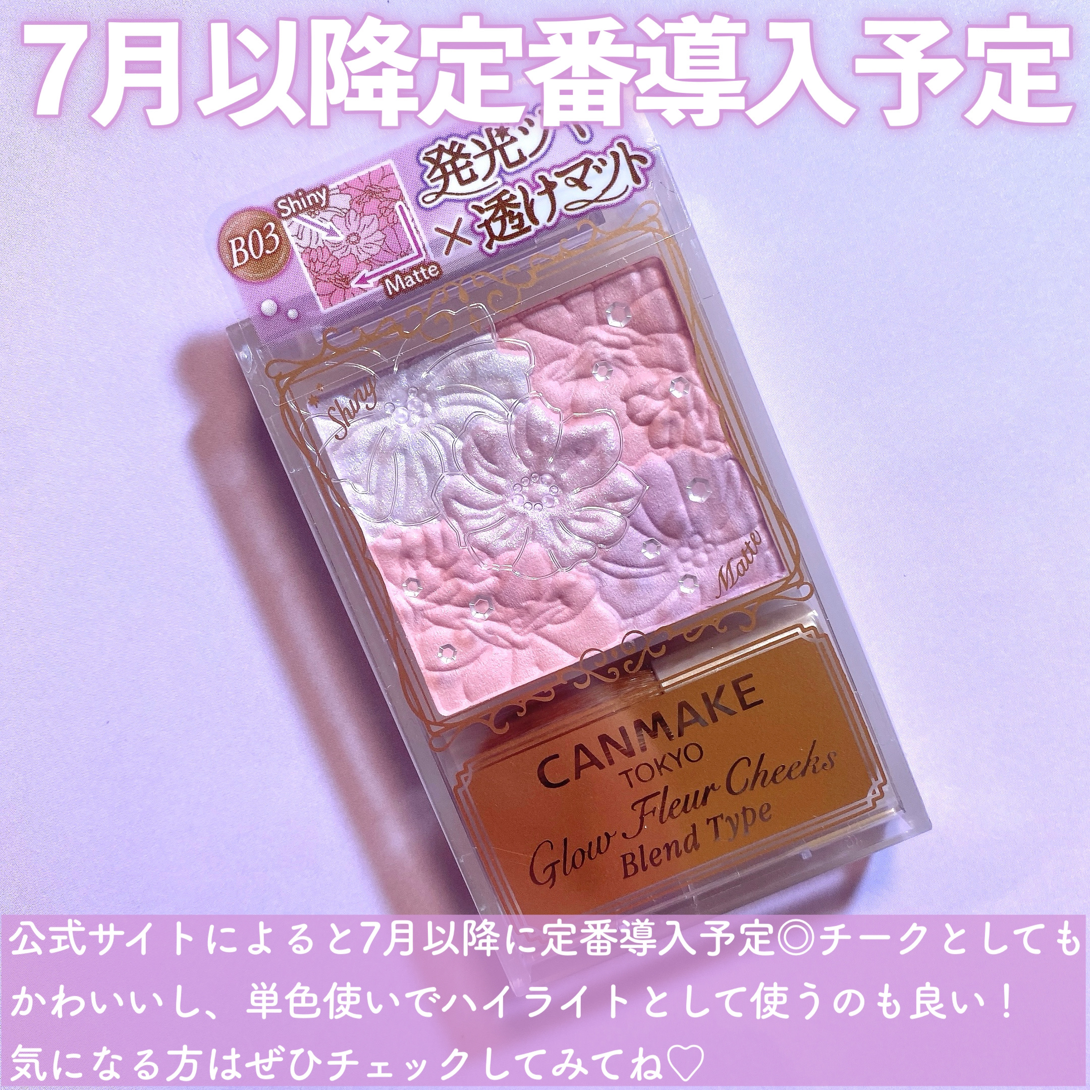 - ”発光ツヤ×透けマット”が1つに 混ぜ方次第で自分好みの仕上がりを作れる4色チーク 透け感のあるマットと繊細パール、2つの質感をブレンドして 肌に溶け込むような透けツヤ発色を楽しめるチーク。 しっとりなめらかなパウダーで、粉飛びしにくく、肌に密着します