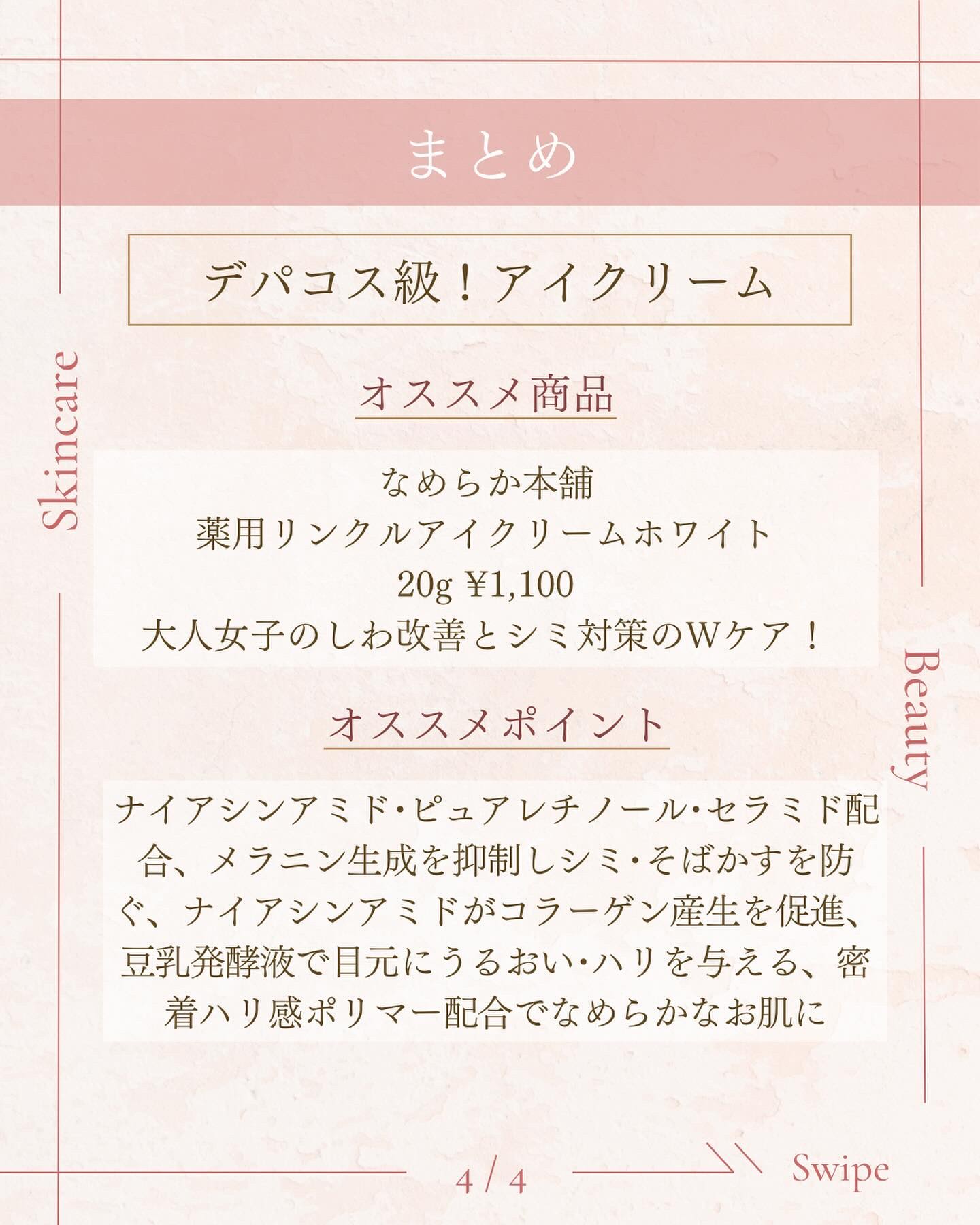 なめらか本舗 薬用リンクルアイクリーム ホワイト | 1,100円 |