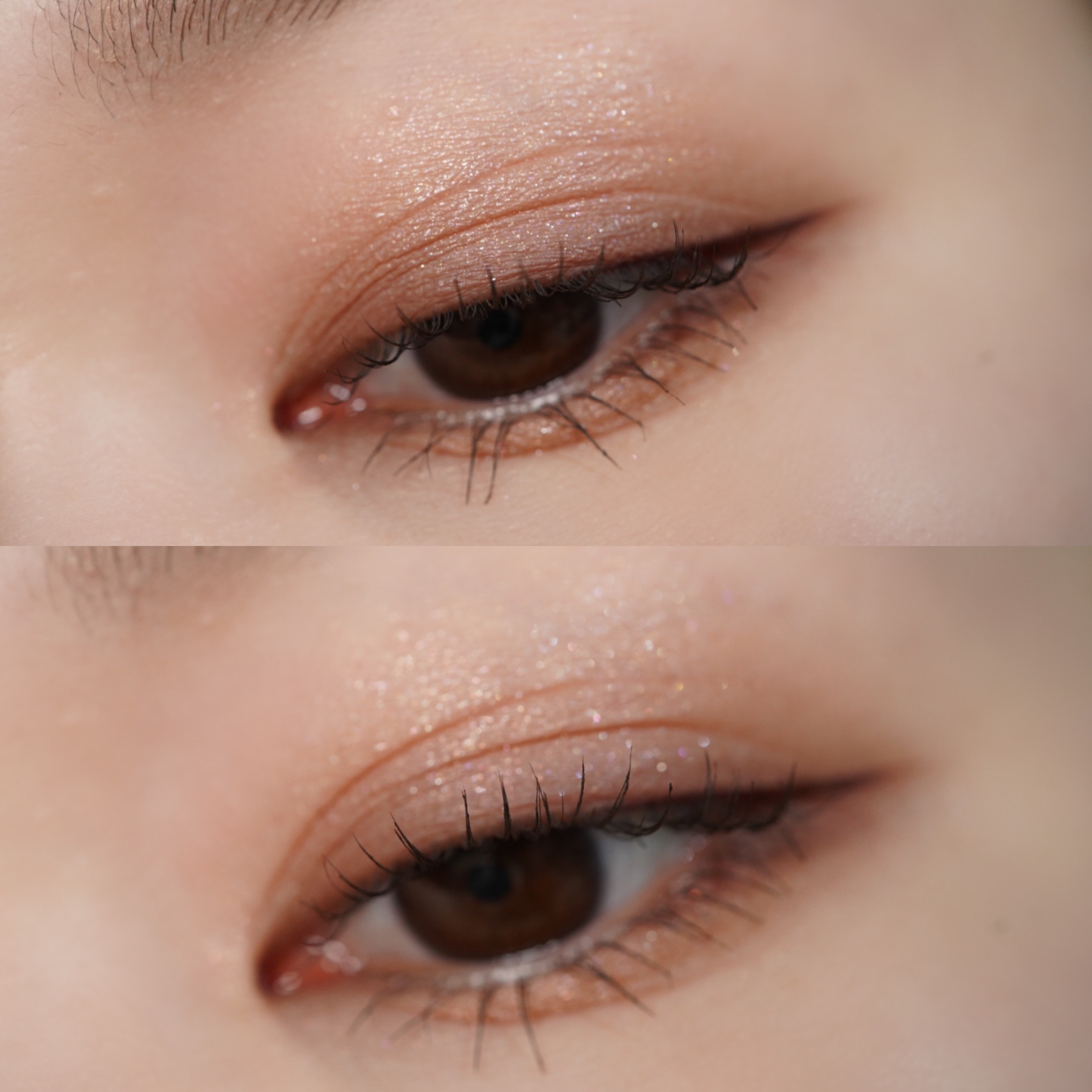 よくパレットのなかで明るいカラーをベースにまぶたに広く塗ることが多いのですが、パール感のあるカラーを避ける🙆♀️! パール感たっぷりの明るいカラーは涙袋に使うぐらい光を集めてぷっくり見せてくれるので、まぶたに広く使うと腫れぼったく見えがち😓 目元を明るくみせてくれたり、次に使うアイシャドウをぼかしやすくしてくれるけど、すっ飛ばしてメインのカラーを塗っちゃう✊🏻❤️🔥 涙袋にはたっぷり塗ってぷっくり見せる🙆♀️💕 シルキースフレアイズのマットタイプはすごく優れているな〜と感じました☺️💗 赤やオレンジなどは、入れすぎると腫れぼったく見えやすいので、見せたいカラーは下まぶた目尻にのせて色をたのしむ♡♡ パール感なしの透けマットだけじゃ物足りない… そう感じさせない華やかなラメが左上に入っているので黒目上と涙袋にのせるとすごく可愛い仕上がりに😍! 厄介な左右差のお陰でマットアイシャドウが好きになりました😌💕
