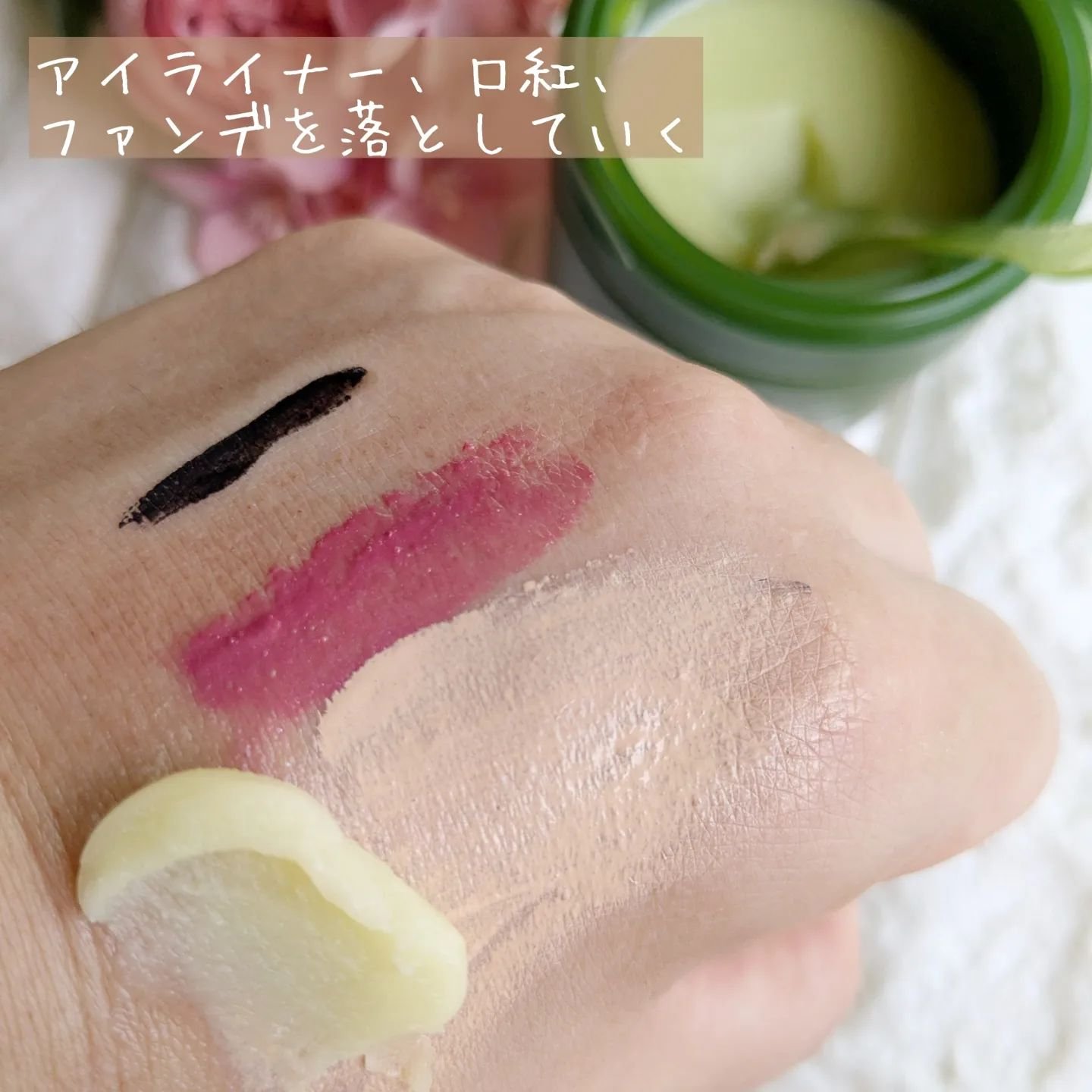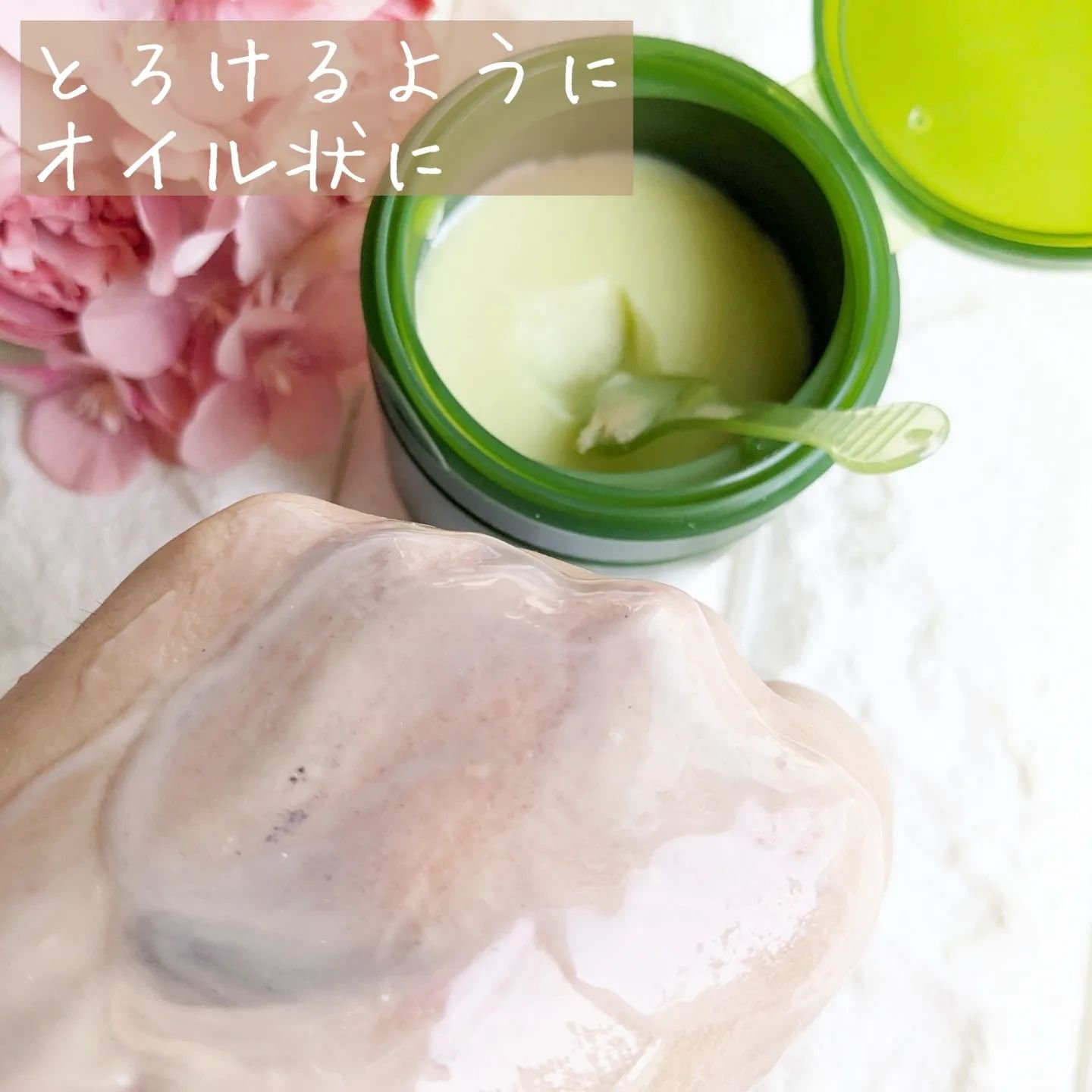 見た目、固そうなバームなのに肌にのせると、とろける🫠 予想以上のとろけ方!! 水を少し加えると、乳化も早い感じ◎ メイクしていない時もメイクしている時も使っています♬