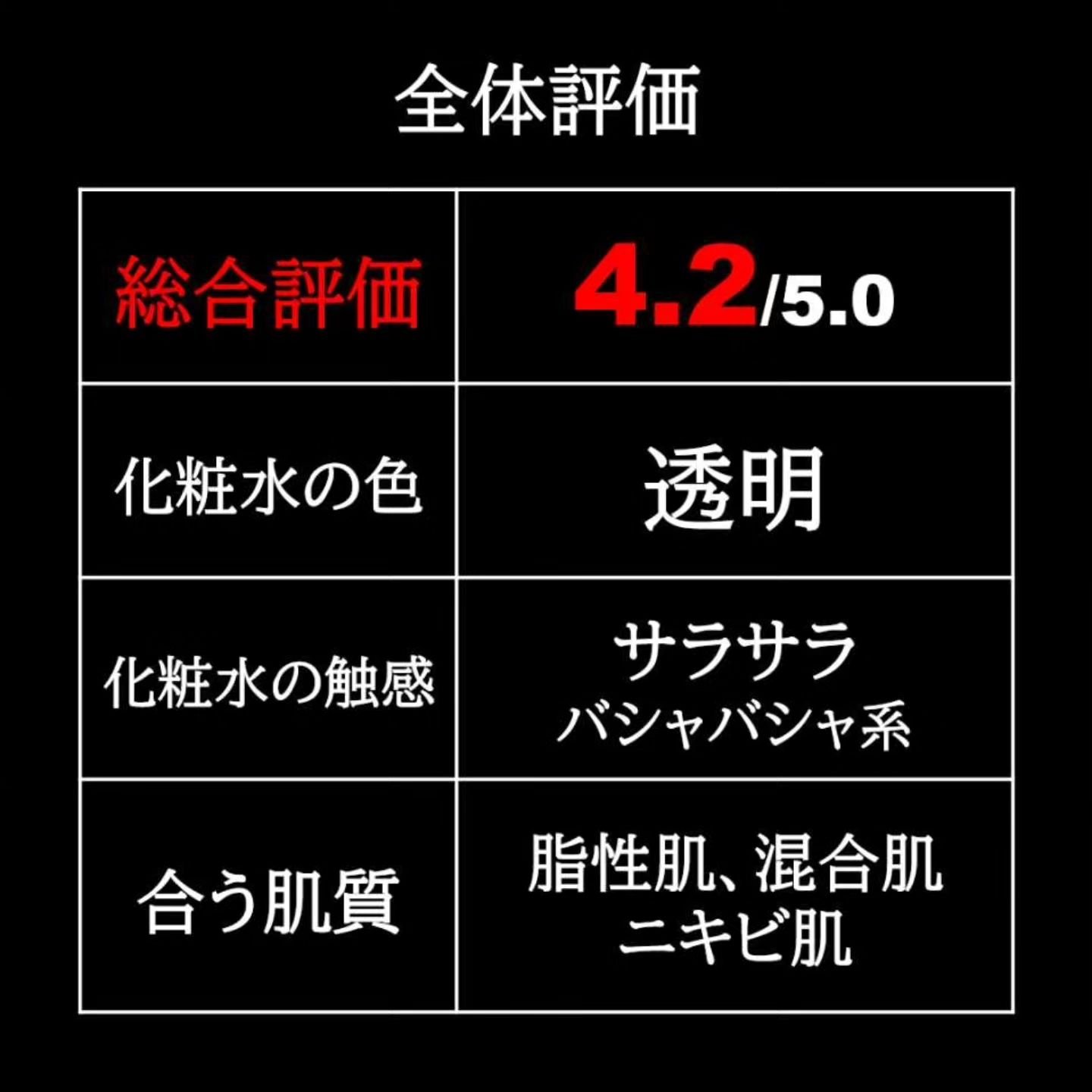 | スキンケアランキング第11位 | シャバシャバしたテクスチャーで、重ね付けしても肌なじみが良いです。さっぱりとした使い心地。 | 詳細を見る | |