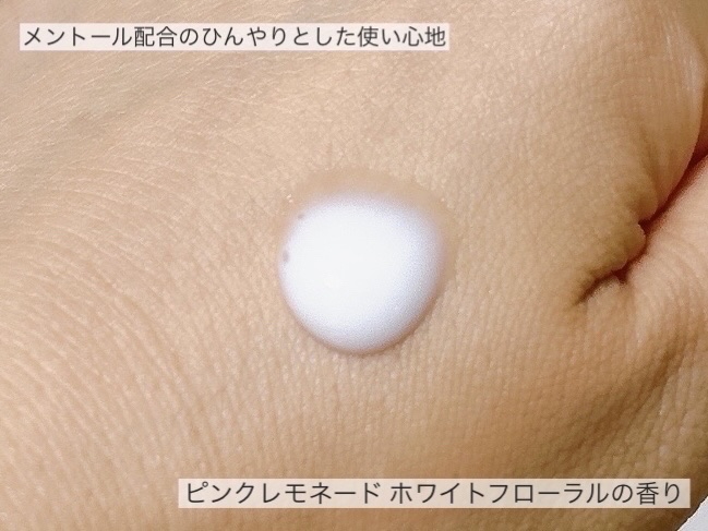 - 限定品 ●甘く爽やかな香りとみずみずしいタッチで手肌を満たすハンドエッセンス。 すっとなじむ美容液のような感覚で、 油断しがちな夏のハンドケア にも心地よく使えます。 ●メントール配合のひんやりとした使い心地で、暑い夏でも快適にご使用いただけます。 ●ジューシーでみずみずしい果実のエキス(レモンエキスやビルベリーエキス)を配合。 ベタつかずにうるおい、やわらかく透明感の高い手肌にみちびきます。 透明感:うるおいによる肌印象のこと ●ベタつきのない使用感で、 すぐにパソコンやスマートフォンに触れられます。 ●使うたび、 甘く爽やかな香りが手肌をふんわりと包み込みます。 ●パラベンフリー。 ●ピンクレモネード ホワイトフローラルの香り