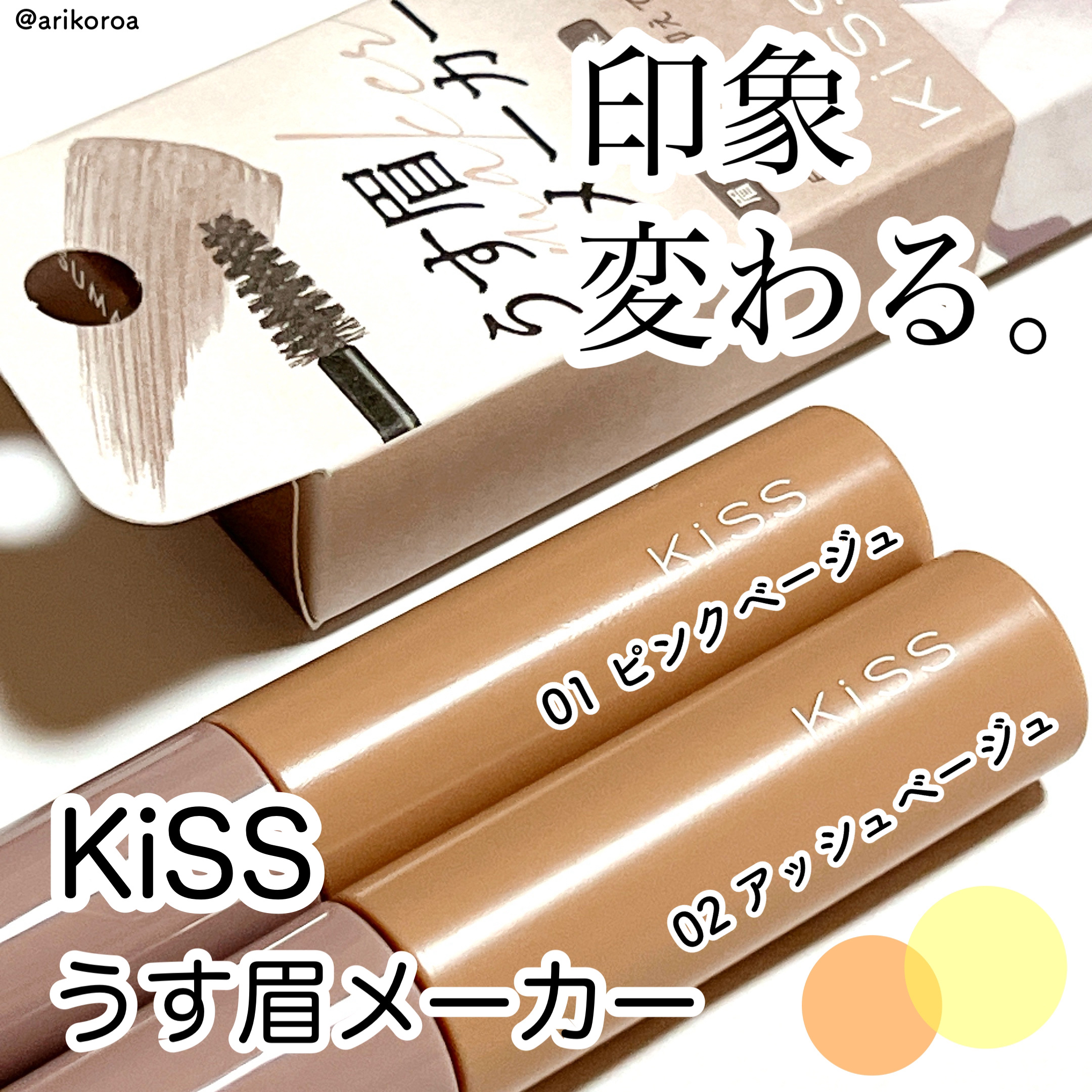 ようやく出逢えた大成功眉マスカラ🕊 KiSSうす眉メーカー01ピンクベージュ ¥1100 濃い眉を薄くして柔らかい素眉を演出する ○コンシーラーカラー設計肌に馴染みながら眉毛をしっかり消し、濃いまゆの印象を抑えて柔らかく見せます。 薄くなるというか消えるくらい威力ある肌につかないで塗りやすい