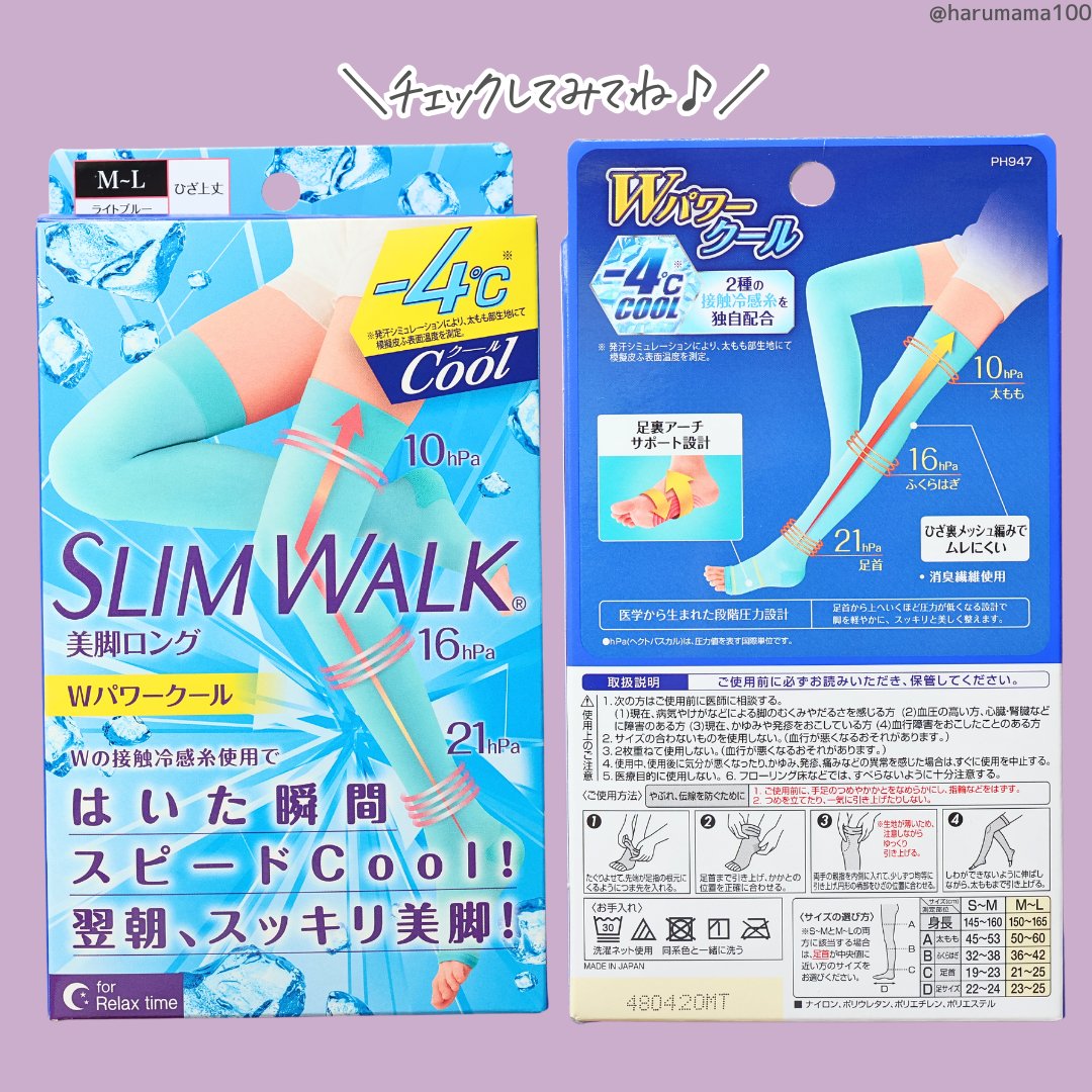 .スリムウォーク 美脚ロング 夏限定クール.接触冷感糸使用で-4℃*1クール.ᐟ.ᐟ 涼しくはけて翌朝、スッキリ美脚𓈒𓂂𓏸放熱性に優れた接触冷感糸を使用していて今の時期にぴったり◡̈⋆.膝上丈でふくらはぎもすっぽり!少し薄めの生地で通気性が良...