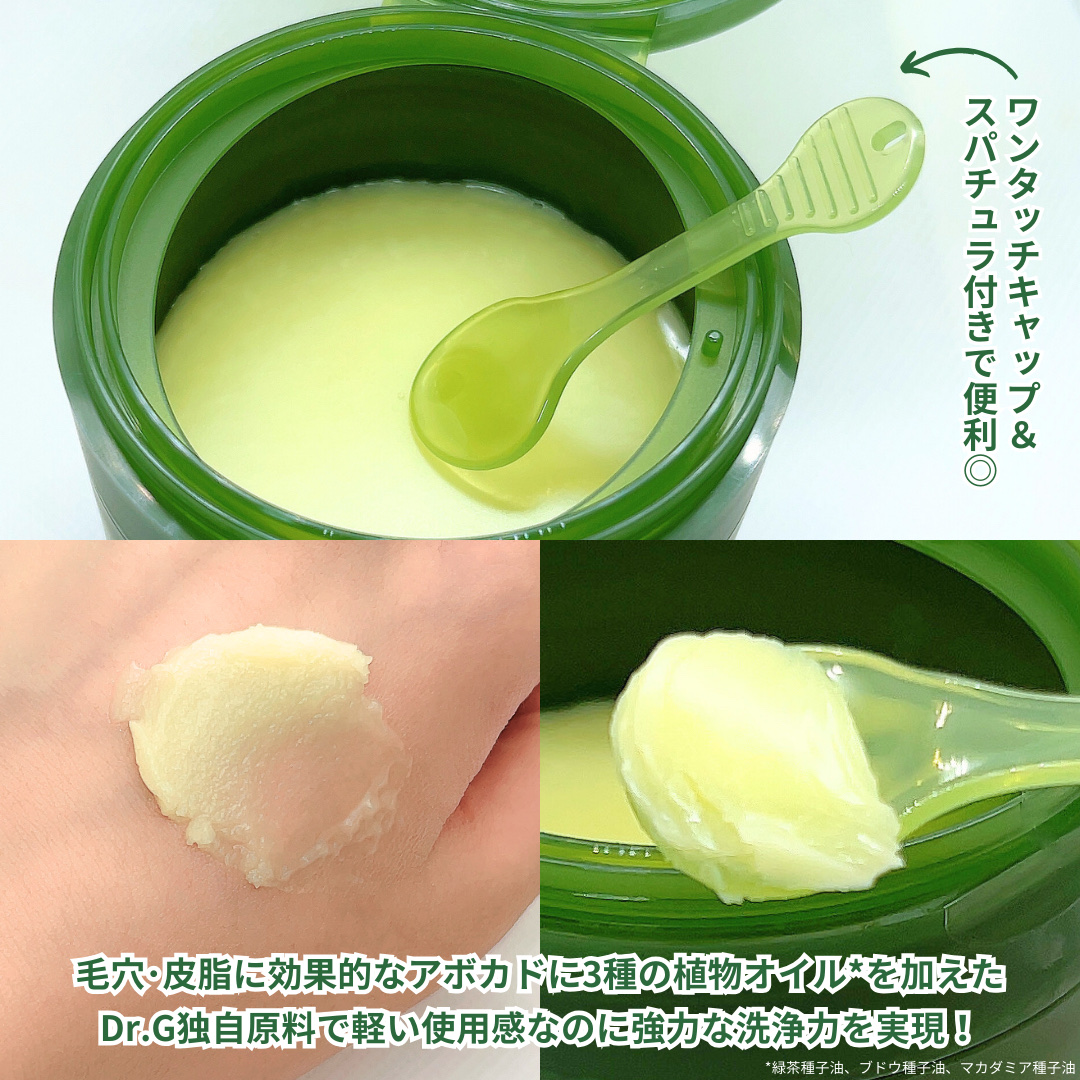 ✔️Dr.Gグリーンディープポアクレンジングバーム100mL捨てられてしまうアボカドと3種の植物オイル*を加えて作られたやさしい使い心地のクレンジングバーム!バームでメイクや皮脂汚れを溶かしテクスチャーがオイルに変わったら古くなった角質をやさ...