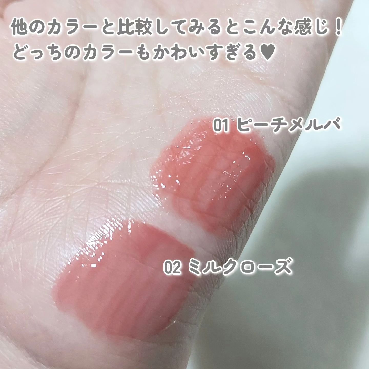 - <01 ピーチメルバ> ミネラルオイル、水添ポリイソブテン、マイクロクリスタリンワックス、リンゴ酸ジイソステアリル、ヒドロキシステアリン酸エチルヘキシル、パルミチン酸デキストリン、ジメチルシリル化シリカ、フェノキシエタノール、メチルパラベン、トコフェロール、シメチコン、水、BG、ユズ果実エキス、モウソウチクたけのこ皮エキス、チャ葉エキス、セイヨウハッカ葉エキス、酸化チタン、黄5、赤202、黄4、酸化鉄、ラウロイルリシン、赤104(1)、水酸化Al、シリカ <02 ミルクローズ> ミネラルオイル、水添ポリイソブテン、マイクロクリスタリンワックス、リンゴ酸ジイソステアリル、ヒドロキシステアリン酸エチルヘキシル、パルミチン酸デキストリン、ジメチルシリル化シリカ、フェノキシエタノール、メチルパラベン、トコフェロール、シメチコン、水、BG、ユズ果実エキス、モウソウチクたけのこ皮エキス、チャ葉エキス、セイヨウハッカ葉エキス、酸化チタン、黄5、赤202、青1、ラウロイルリシン、水酸化Al、酸化鉄、シリカ