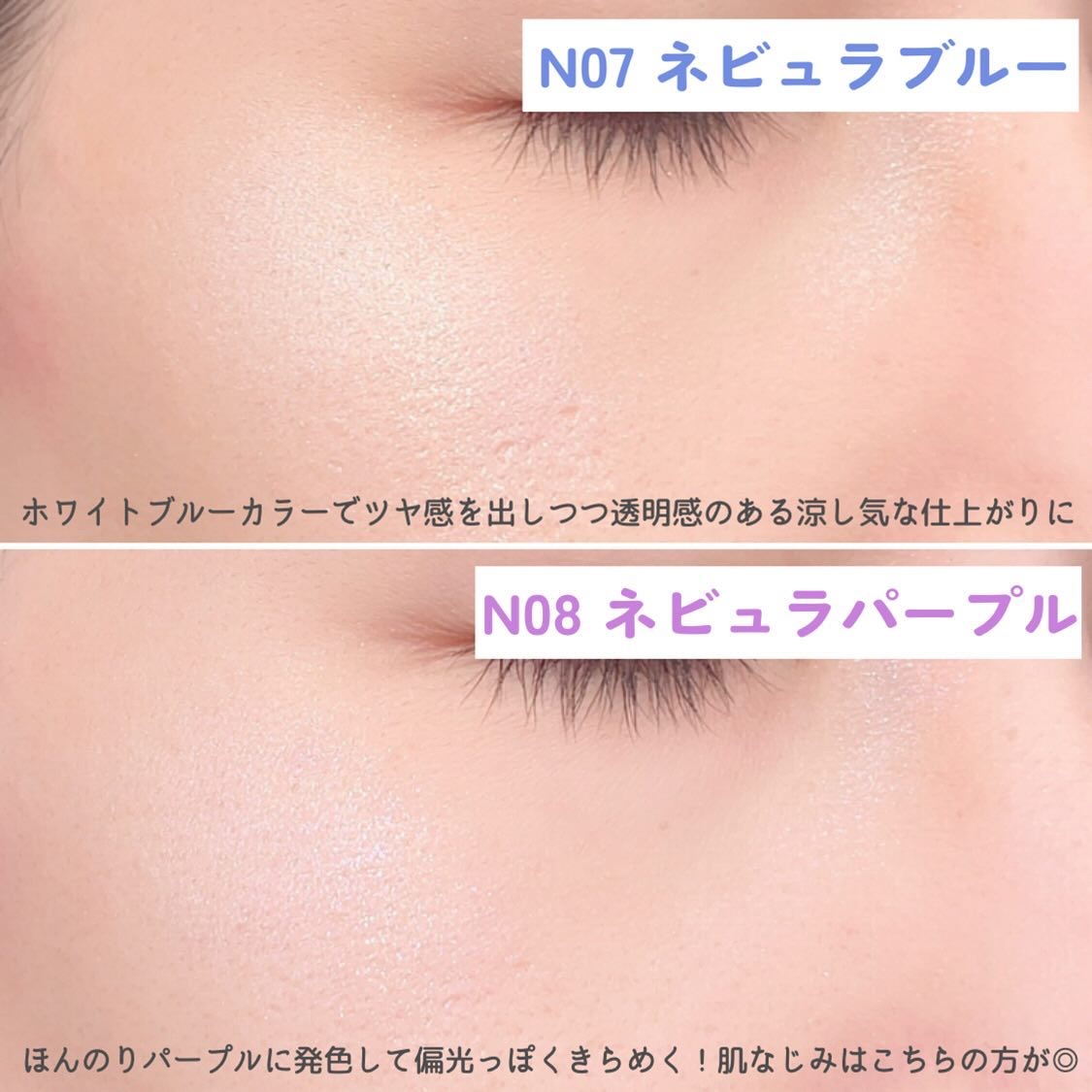 - 「ダイヤモンドのような輝き」天の川のように輝く、透明感と輝きに優れた真珠のような光沢。 複数のファインダイヤモンドの輝きを再現 <01 シルバーホワイト> シルバーホワイトのカラーが美しく輝いてツヤと透明感をプラス。なめらかでモチっとしたテクスチャーと小粒のラメが美しいツヤ肌を演出。Tゾーンや頬骨、デコルテなど光を与えたい部分に塗ればダイアモンドのように輝く。 <02 ライトシャンパン> ライトシャンパンのカラーが血色感と自然な光沢感をプラス。なめらかでモチっとしたテクスチャーと小粒のラメが美しいツヤ肌を演出。Tゾーンや頬骨、デコルテなど光を与えたい部分に塗ればダイアモンドのように輝く。 <03 シャンパンゴールド> シャンパンゴールドのカラーが表情を華やかに引き立てる。なめらかでモチっとしたテクスチャーと小粒のラメが美しいツヤ肌を演出。Tゾーンや頬骨、デコルテなど光を与えたい部分に塗ればダイアモンドのように輝く。 <05 シャンパンピンク> シャンパンピンクのカラーが血色感と透明感を与える。チークに重ねればピンクが引き立つ!なめらかでモチっとしたテクスチャーと小粒のラメが美しいツヤ肌を演出。Tゾーンや頬骨、デコルテなど光を与えたい部分に塗ればダイアモンドのように輝く。 <N01 シルバーホワイト> シルバーカラーのきらめきで、一瞬で透明感ある印象に。 小粒パール+大粒グリッターの組み合わせが、星屑のように繊細かつ大胆に煌めいてワンランク上のメイクに仕上げる。なめらか&モチっとした使用感で肌に高密着。 光を反射させる高屈折オイル配合でどの角度でもツヤ肌を実現。 鼻・頬・目頭・眉下以外にも、肩やデコルテに仕込めばお顔のツヤとリンクして、内から輝くような自然な印象に。 <N02 ライトシャンパン> ライトシャンパンのカラーが肌の色に自然になじみながら、ほどよいツヤと立体感をプラス。 小粒パール+大粒グリッターの組み合わせが、星屑のように繊細かつ大胆に煌めいてワンランク上のメイクに仕上げる。 なめらか&モチっとした使用感で肌に高密着。光を反射させる高屈折オイル配合でどの角度でもツヤ肌を実現。 鼻・頬・目頭・眉下以外にも、肩やデコルテに仕込めばお顔のツヤとリンクして、内から輝くような自然な印象に。 <N07 ネビュラブルー 日本限定色> ブルーとパープルの大粒ラメと、細かいシルバーラメが混ぜ合わさって色白な肌にツヤ感を与えてより明るく見せることができる! <N08 ネビュラパープル 日本限定色> パープルとピンク色の大粒ラメと、細かいシルバーラメが混ぜ合わさって、どのような肌色にもぴったり!かわいらしい雰囲気が作れる。