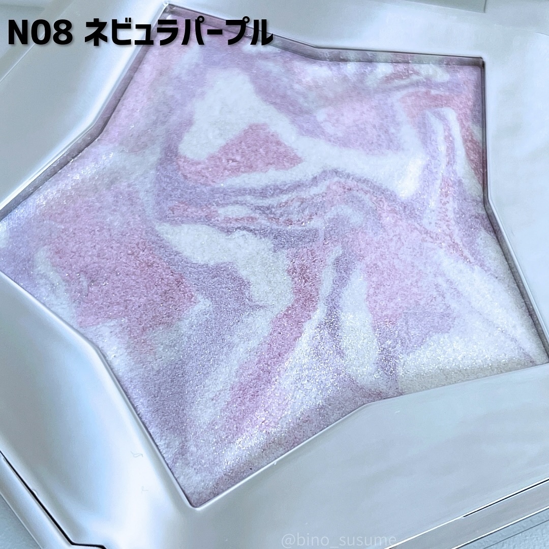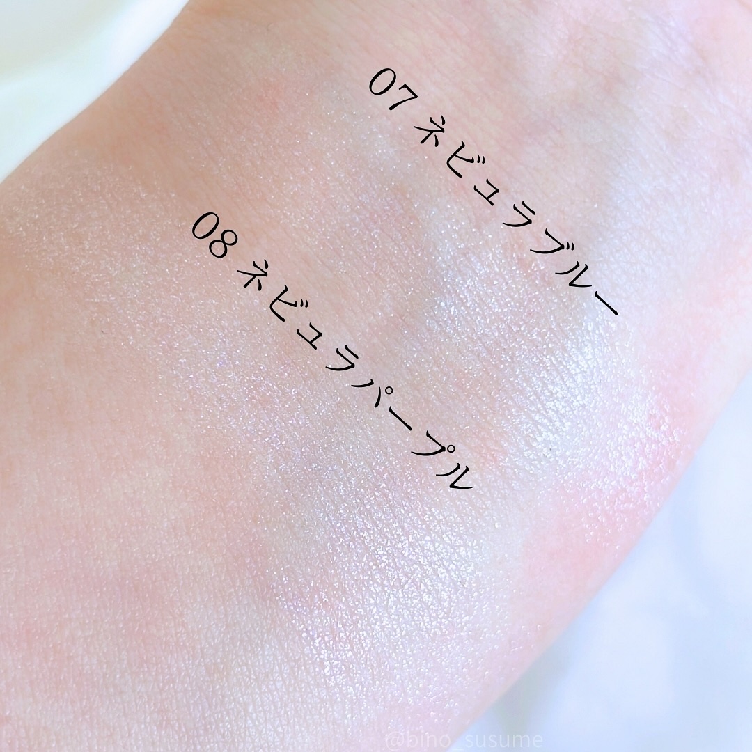 - <N01 シルバーホワイト> マイカ、酸化チタン、ペンチレングリコール、ジメチコン、ポリメチルシルセスキオキサン、酸化スズ、トリエトキシカプリリルシラン、リンゴ酸ジイソステアリル、ラウロイルリシン、フェニルトリメチコン、(ジメチコン/ビニルジメチコン)クロスポリマー、ホウケイ酸(Ca/Na) <N02 ライトシャンパン> マイカ、酸化チタン、ペンチレングリコール、ジメチコン、ポリメチルシルセスキオキサン、酸化スズ、トリエトキシカプリリルシラン、リンゴ酸ジイソステアリル、ラウロイルリシン、フェニルトリメチコン、(ジメチコン/ビニルジメチコン)クロスポリマー、ホウケイ酸(Ca/Na) <N07 ネビュラブルー(日本限定色)> マイカ、酸化チタン、ペンチレングリコール、ジメチコン、ポリメチルシルセスキオキサン、酸化スズ、トリエトキシカプリリルシラン、リンゴ酸ジイソステアリル、ラウロイルリシン、フェニルトリメチコン、(ジメチコン/ビニルジメチコン)クロスポリマー、ホウケイ酸(Ca/Na) <N08 ネビュラパープル(日本限定色)> マイカ、酸化チタン、ペンチレングリコール、ジメチコン、ポリメチルシルセスキオキサン、酸化スズ、トリエトキシカプリリルシラン、リンゴ酸ジイソステアリル、ラウロイルリシン、フェニルトリメチコン、(ジメチコン/ビニルジメチコン)クロスポリマー、ホウケイ酸(Ca/Na) <01 シルバーホワイト> ポリメチルシルセスキオキサン、ホウケイ酸(Ca/Na)、フェニルトリメチコン、リンゴ酸ジイソステアリル、ジメチコン、酸化チタン、(ジメチコン/ビニルジメチコン)クロスポリマー、ペンチレングリコール、マイカ、酸化スズ、ラウロイルリシン、トリエトキシカプリリルシラン <02 ライトシャンパン> ポリメチルシルセスキオキサン、フェニルトリメチコン、ホウケイ酸(Ca/Al)、リンゴ酸ジイソステアリル、マイカ、ジメチコン、酸化チタン、(ジメチコン/ビニルジメチコン)クロスポリマー、ペンチレングリコール、酸化鉄、トリエトキシカプリリルシラン、酸化スズ、ラウロイルリシン <03 シャンパンゴールド> ポリメチルシルセスキオキサン、フェニルトリメチコン、ホウケイ酸(Ca/Al)、リンゴ酸ジイソステアリル、マイカ、ジメチコン、酸化チタン、(ジメチコン/ビニルジメチコン)クロスポリマー、ペンチレングリコール、酸化鉄、ラウロイルリシン、酸化スズ、トリエトキシカプリリルシラン、カルミン <05 シャンパンピンク> ポリメチルシルセスキオキサン、フェニルトリメチコン、ホウケイ酸(Ca/Al)、リンゴ酸ジイソステアリル、マイカ、酸化チタン、ジメチコン、(ジメチコン/ビニルジメチコン)クロスポリマー、ペンチレングリコール、酸化鉄、酸化スズ、カルミン、ラウロイルリシン、トリエトキシカプリリルシラン