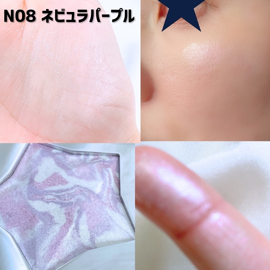 - 「ダイヤモンドのような輝き」天の川のように輝く、透明感と輝きに優れた真珠のような光沢。 複数のファインダイヤモンドの輝きを再現 <01 シルバーホワイト> シルバーホワイトのカラーが美しく輝いてツヤと透明感をプラス。なめらかでモチっとしたテクスチャーと小粒のラメが美しいツヤ肌を演出。Tゾーンや頬骨、デコルテなど光を与えたい部分に塗ればダイアモンドのように輝く。 <02 ライトシャンパン> ライトシャンパンのカラーが血色感と自然な光沢感をプラス。なめらかでモチっとしたテクスチャーと小粒のラメが美しいツヤ肌を演出。Tゾーンや頬骨、デコルテなど光を与えたい部分に塗ればダイアモンドのように輝く。 <03 シャンパンゴールド> シャンパンゴールドのカラーが表情を華やかに引き立てる。なめらかでモチっとしたテクスチャーと小粒のラメが美しいツヤ肌を演出。Tゾーンや頬骨、デコルテなど光を与えたい部分に塗ればダイアモンドのように輝く。 <05 シャンパンピンク> シャンパンピンクのカラーが血色感と透明感を与える。チークに重ねればピンクが引き立つ!なめらかでモチっとしたテクスチャーと小粒のラメが美しいツヤ肌を演出。Tゾーンや頬骨、デコルテなど光を与えたい部分に塗ればダイアモンドのように輝く。 <N01 シルバーホワイト> シルバーカラーのきらめきで、一瞬で透明感ある印象に。 小粒パール+大粒グリッターの組み合わせが、星屑のように繊細かつ大胆に煌めいてワンランク上のメイクに仕上げる。なめらか&モチっとした使用感で肌に高密着。 光を反射させる高屈折オイル配合でどの角度でもツヤ肌を実現。 鼻・頬・目頭・眉下以外にも、肩やデコルテに仕込めばお顔のツヤとリンクして、内から輝くような自然な印象に。 <N02 ライトシャンパン> ライトシャンパンのカラーが肌の色に自然になじみながら、ほどよいツヤと立体感をプラス。 小粒パール+大粒グリッターの組み合わせが、星屑のように繊細かつ大胆に煌めいてワンランク上のメイクに仕上げる。 なめらか&モチっとした使用感で肌に高密着。光を反射させる高屈折オイル配合でどの角度でもツヤ肌を実現。 鼻・頬・目頭・眉下以外にも、肩やデコルテに仕込めばお顔のツヤとリンクして、内から輝くような自然な印象に。 <N07 ネビュラブルー 日本限定色> ブルーとパープルの大粒ラメと、細かいシルバーラメが混ぜ合わさって色白な肌にツヤ感を与えてより明るく見せることができる! <N08 ネビュラパープル 日本限定色> パープルとピンク色の大粒ラメと、細かいシルバーラメが混ぜ合わさって、どのような肌色にもぴったり!かわいらしい雰囲気が作れる。