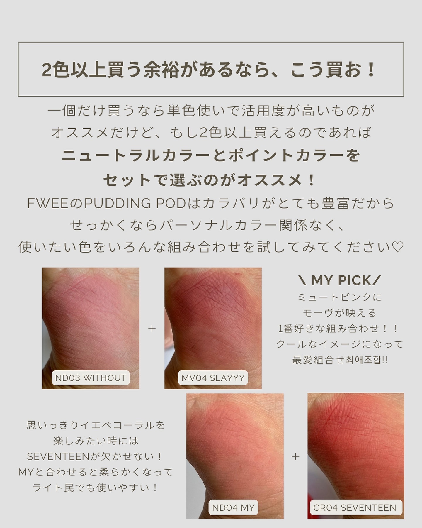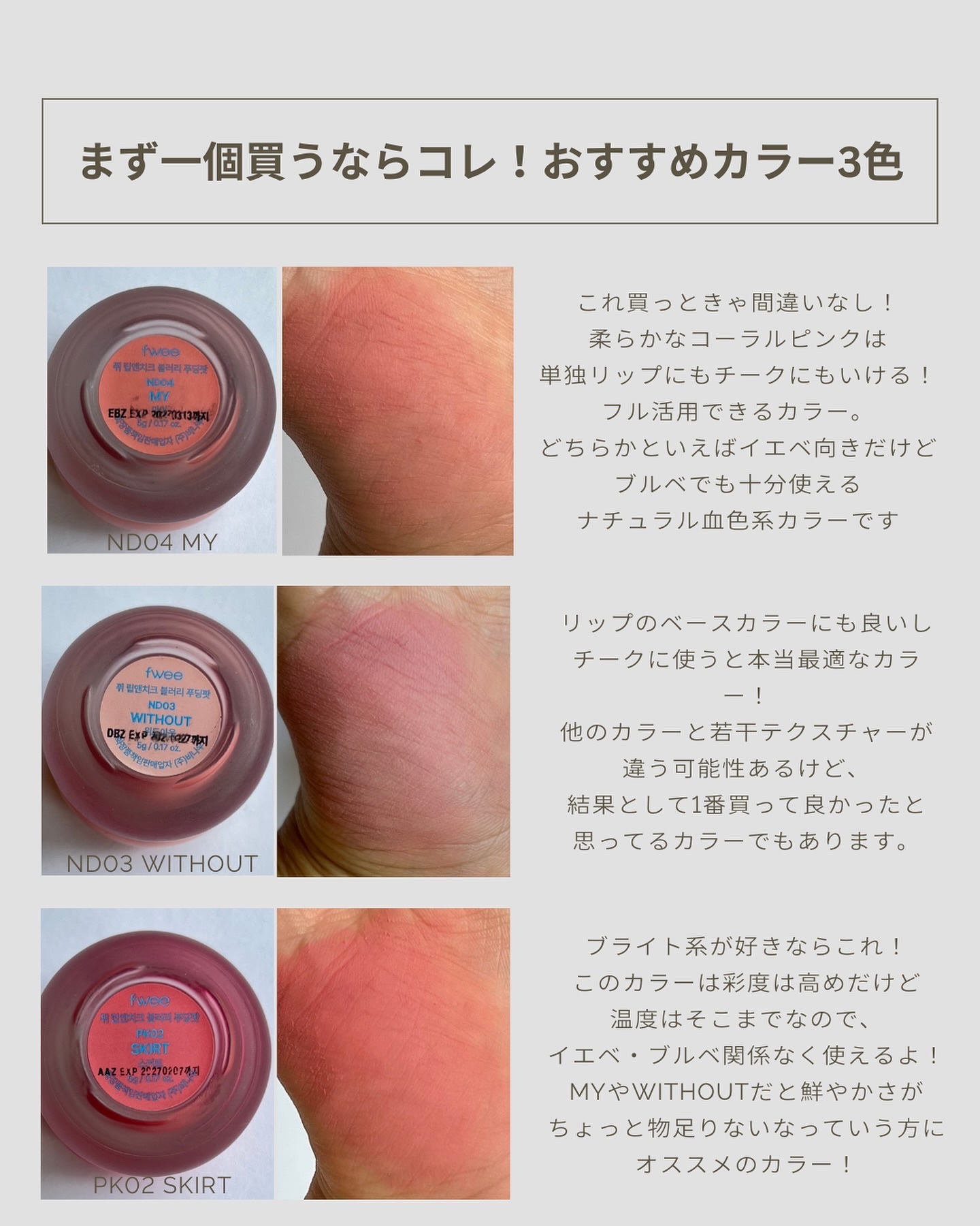 一個持ってれば、リップはもちろんチークにも、 アイメイクにも使えて超便利!! しかも見た目も可愛いし、使用感や機能性も抜群だよ!! withoutカラーの返品騒動の時に 該当の商品当たっちゃって、 ブランドに対しても結構がっかりしてたんだけど、 結局今になって考えてみると、 やっぱりめちゃくちゃ良い商品だし、 withoutめちゃんこ使いやすい😂 いまだにブランドに対しては色々と思うところはあるのだけど、 それでもオススメしたくなっちゃうほど良い商品なんデス🥲