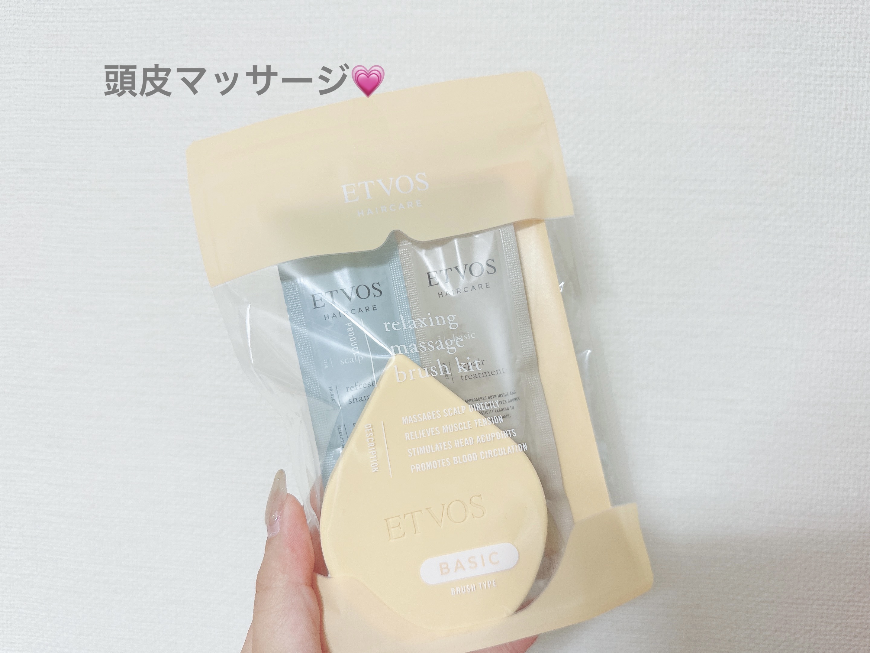 - アウトバスでもインバスでも使え、頭皮を心地よく刺激できるマッサージブラシ。 目や頭を酷使したときのリフレッシュに、シャンプー時のディープクレンズにと幅広く使用できます。 [サイズ] 幅7.1cm×奥行8.9cm×高さ2.9cm 【リラクシングマッサージブラシ キット】 エトヴォスのヘアケアを気軽に体験できる限定キット。 年齢と共に生じる髪の様々な悩み。 髪悩みの根本*1にアプローチするシャンプー&トリートメントで、うるおいを保ちながらしなやかな髪へと導きます。 こだわり抜いた精油が織りなすシトラスハーバル調の爽やかな香りは、1日の終わりを締めくくるバスタイムにリフレッシュをもたらします。 マッサージブラシはほどよい刺激で、インバスでもアウトバスでも。 ブラシはシャンプー時だけでなくデスク周りやリビングにおいて簡単に頭皮のリフレッシュを。 *1 髪のうるおい不足による <セット内容> リラクシングマッサージブラシ+モイストシャンプー10ml+リペアトリートメント シトラスハーバル8g 【リラクシングマッサージブラシキット(限定)】 乾燥が気になる髪、頭皮に※1。指では叶わない絶妙な刺激で頭皮全体をケアする大人気※2のマッサージブラシと髪のダメージをケアし、艶やかにまとめるノンシリコンヘアオイル(2包)をセットした限定キット。 ・ブラシ:バスルームにぬくもりを添える、ナチュラルな限定カラー やすらぎを感じるマイルドなピスタチオ あたたかみを感じるジューシィなカシス 27本の密な突起が寒さでこわばりがちな頭皮全体を刺激、心地よいリラックスタイムに。シャンプーの泡立ちサポートにも。 ・ヘアオイルセラム:ダメージ・乾燥・うねり※3をケアする、ノンシリコンでなじみのよいオイル。ベタつき感のないまとまりのよい艶髪に。 ローズブーケをベースにした豊かな香り。 こわばりがちな寒い季節に、髪をやさしくケアして上質なヘアケア時間を。 ※1 ヘアオイルセラムは頭皮には使用せず、頭髪のみにご使用ください ※2 当社製品内において ※3 カラーや紫外線などのダメージによるもの セット内容 ・リラクシングマッサージブラシ ・ヘアオイルセラム2連パウチ(ヘアオイルセラム1mL×2包)