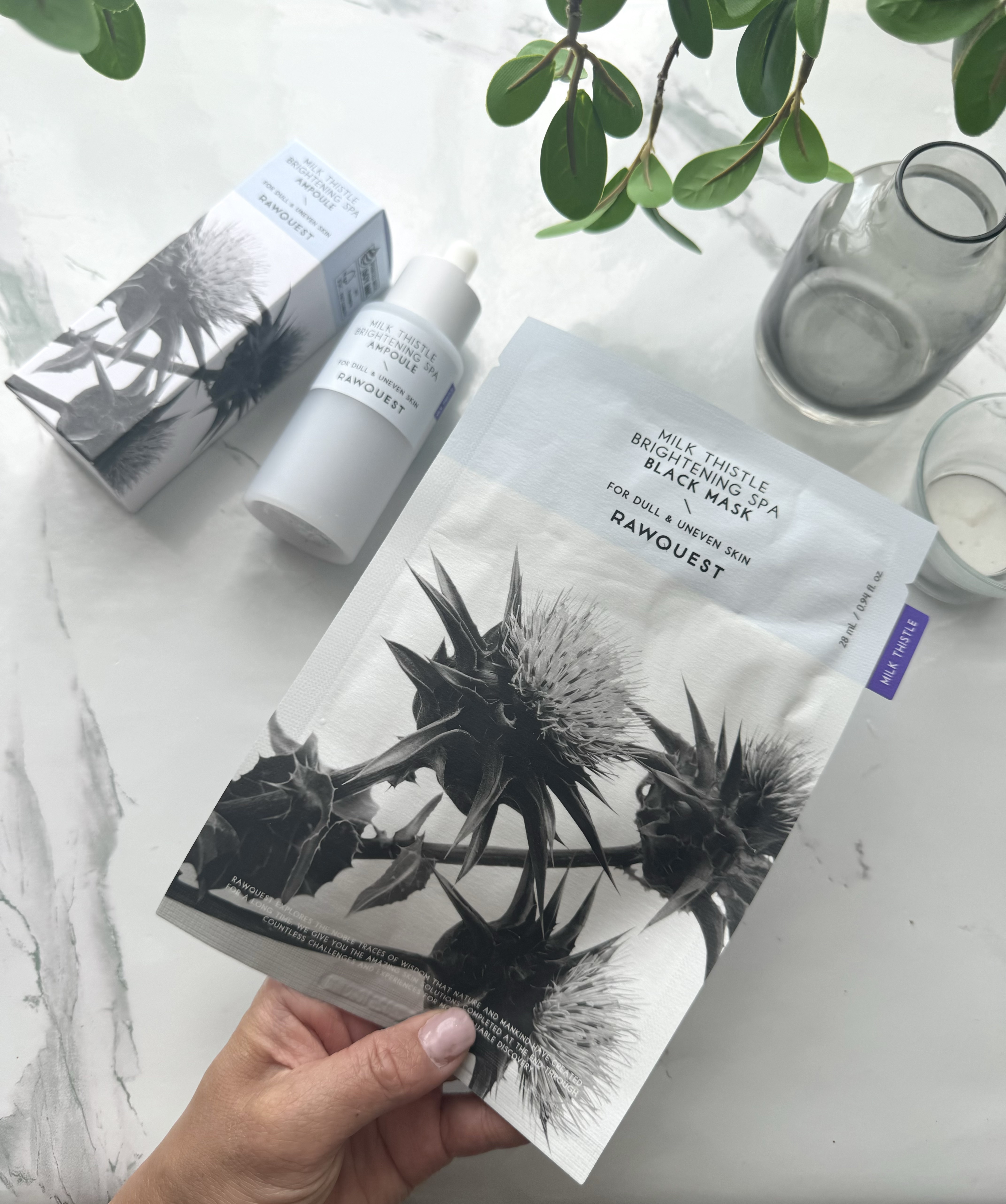 RAWQUESTミルクシスルブライトニングスパブラックマスク日焼けし肌の水分補給のために冷蔵庫に眠っているシートマスクを1日1枚使ってます。今回は、RAWQUEST!ブラックトリュフ成分配合!ミルクシスルブライトニングスパブラックマスクのシー...