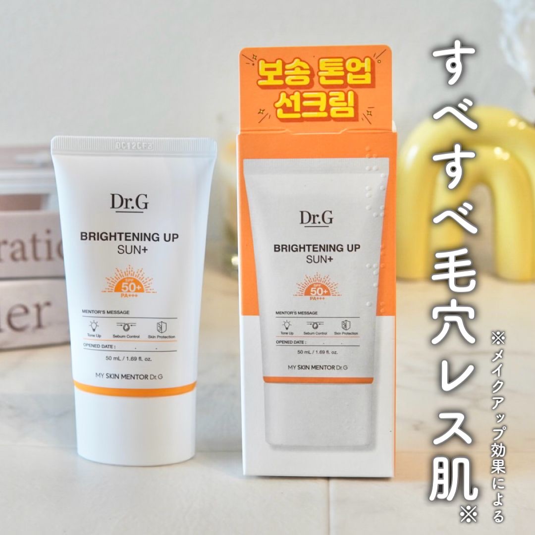 LDKのBestbuy賞を受賞したこともある日焼け止め&下地クリーム☀Dr.GブライトニングアップサンプラスSPF50+・PA+++ピーチカラーでほんのりトーンアップしてくれてお肌を自然に綺麗に見せてくれます✨スルスルと伸びが良くサラッとべた...