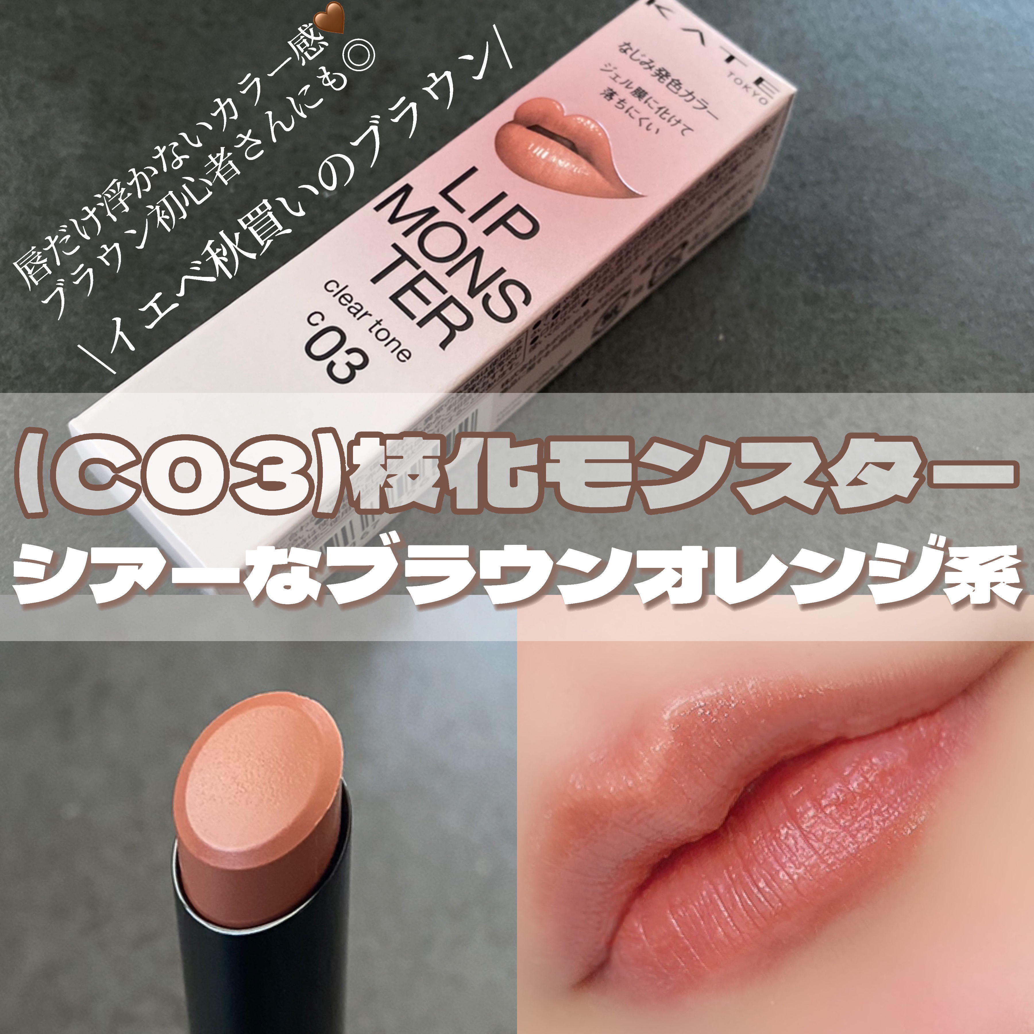 ◯KATEリップモンスタークリアトーンC02 肉色モンスターシアーなスモーキーピンク系💕『発色を抑えたなじみ発色カラーが唇の色と同化。長時間色持続で、落ちにくい。』♡全3色♡保湿(←個人的にはめちゃくちゃ保湿されてる感じというより、リプモンと...