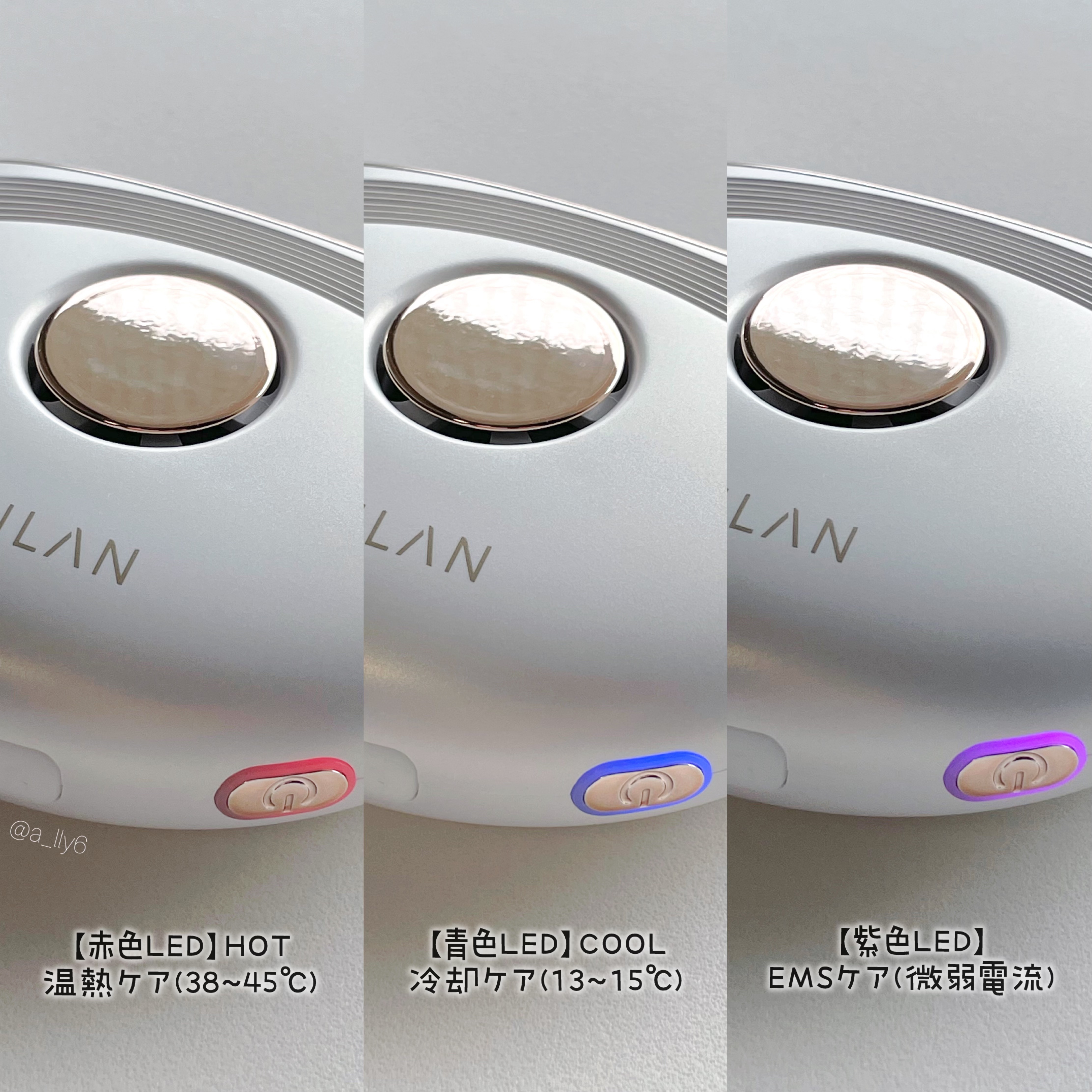 コンパクトサイズで7役の多機能カッサ👀 持ち運び便利で邪魔にならないし自立してくれる 温・冷モード すぐあったかくなる🥰 真ん中のクーラー?ファンの音がちょっとするけど、すぐ冷たくもなるからオールシーズン使えそう 比較的お手頃価格なのに赤・青・紫のLEDでお肌のケアタイムにも使えるから私はパックした後、乳液かクリームを薄く塗ってから使ってるよ💖