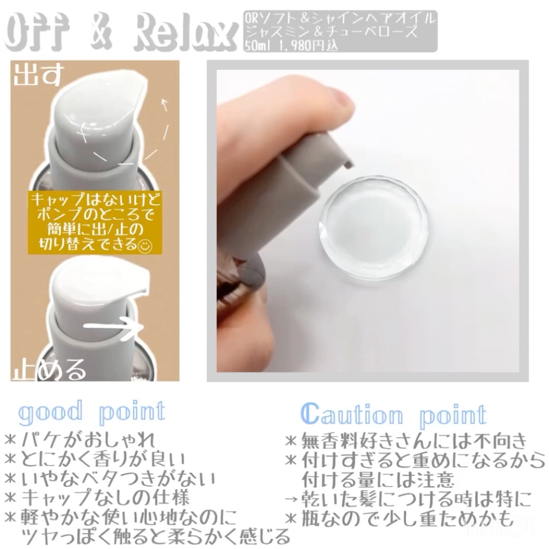 商品詳細情報Off&Relax ORソフト&シャインヘアオイル