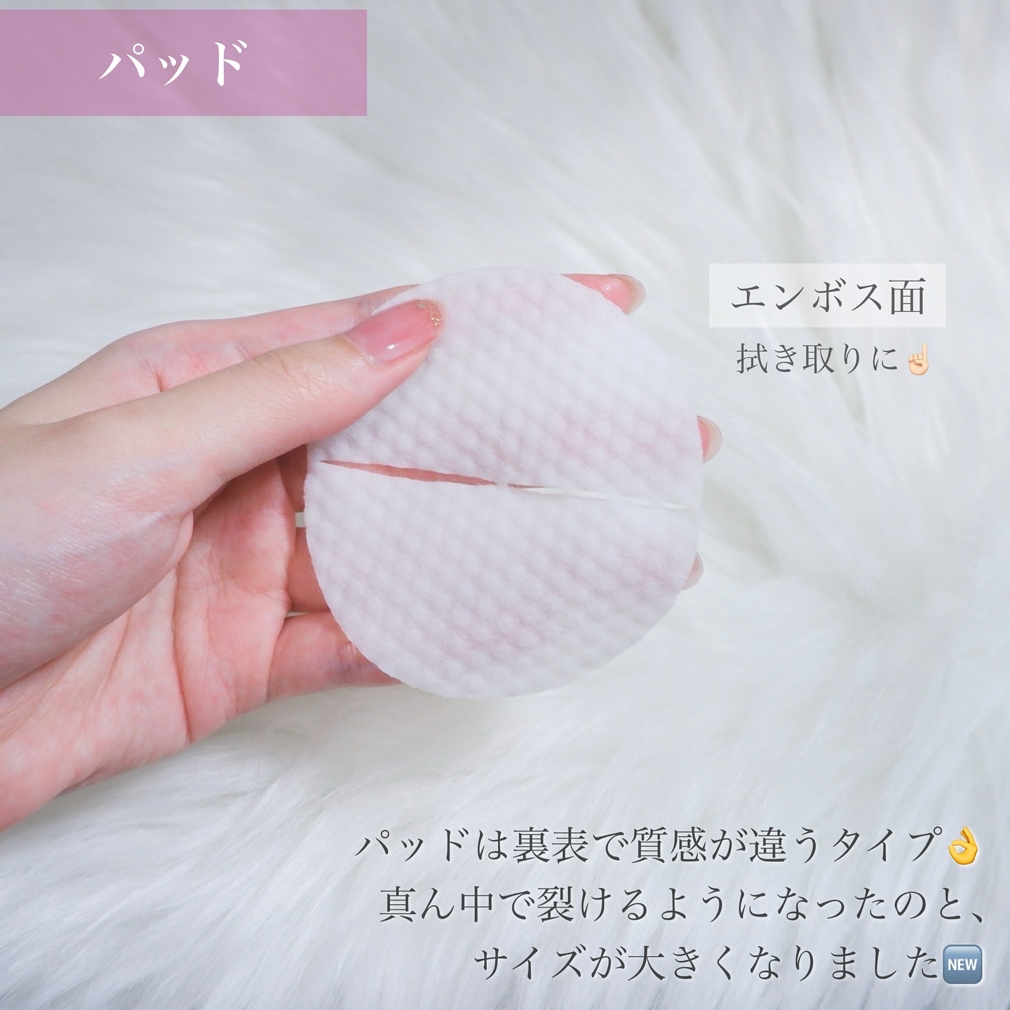 - リニューアル発売 古くなった角質や皮脂をやさしくふき取り、 しっとりなめらかな肌へと導くトナーパッド。 特殊シートとたっぷりの保湿ケア成分で肌へ水分チャージしながら、余分な皮脂や角質をやさしくふき取りキメの整ったなめらかな肌へと仕上げます。 うるおいを抱え込み、乾燥による肌悩みを寄せ付けにくい美しさを持つ肌のPHを追求し、PH5.5の弱酸性に整えました。洗浄後アルカリ性に傾きやすい敏感肌を素早くうるおして保護します。毎日の角質ケアとして使えるよう、肌への刺激の少ない使い心地です。敏感肌にもお使いいただけます。たっぷりの美容液を抱え込むコットンはポイントパックとしてもお使いいただけます。
