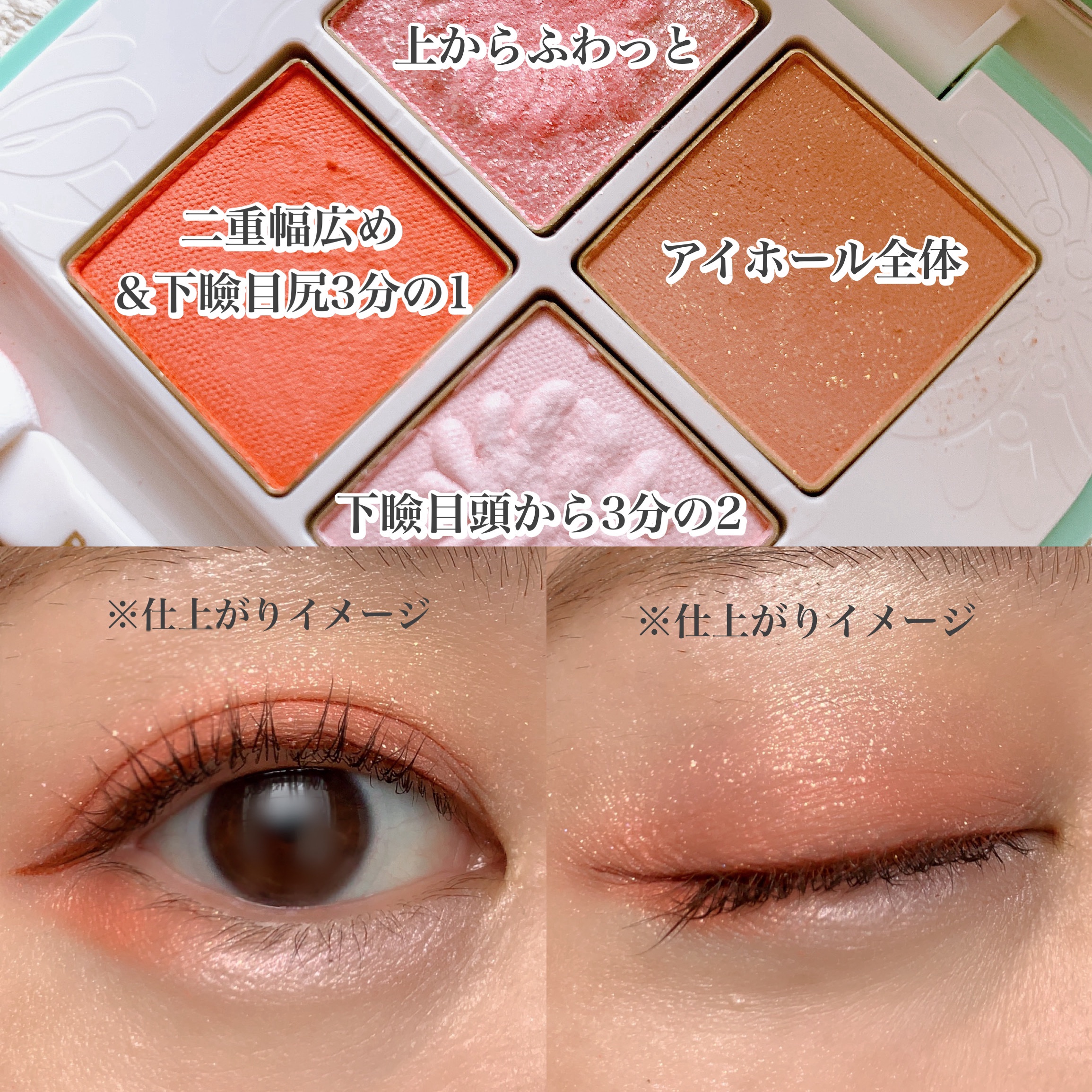 ピンクベージュを中心に、 ラメ&マットがバランス良く配色されていて、 締色が濃すぎないところも個人的にヒット。 意外としっかり色が乗ります。 まさに桃のようなうぶふわな印象🍑 ここまでピンクピンクしていてカルミンフリーなのは 嬉しいし、ありがたい♡