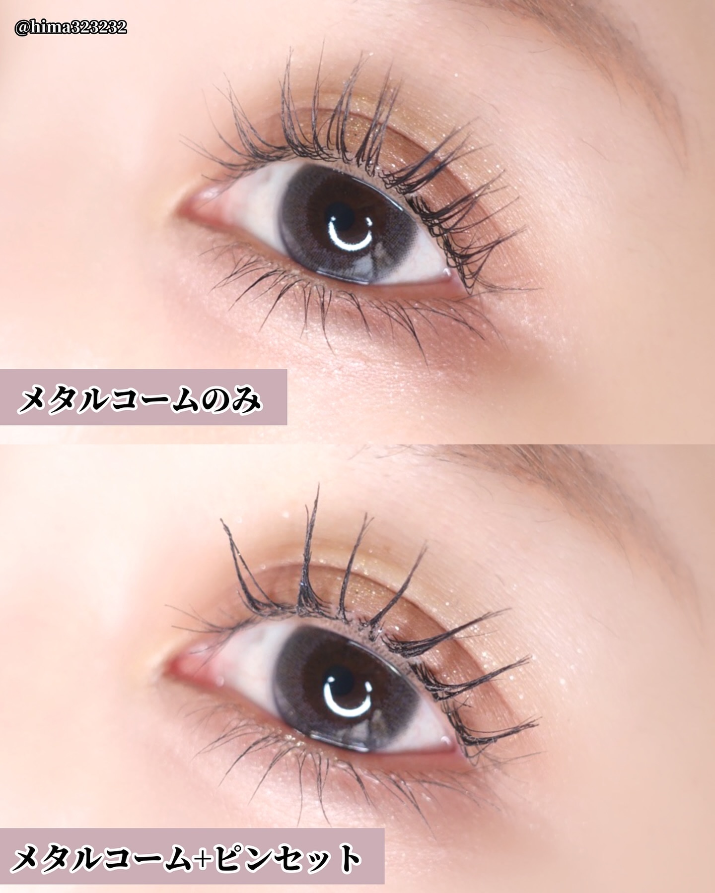 マスカラの金属コームのピッチを幅広に設計したボリュームタイプが今月から先行販売されてたよ🍒ˊ˗ 繊維なしで重ね塗りしてもダマにならず自まつ毛のボリューム感を出せる🌸 容器の蓋部分がボリュームタイプはピンクレッドみたいな色だから既存のメタルックマスカラと間違えることなくて◎
