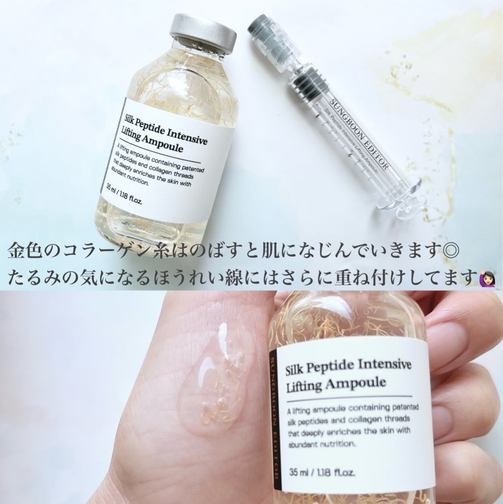 sungbooneditor(成分エディター)シルクペプチドインテンシブリフティングアンプル金色のコラーゲン糸*が特徴的な美容液✨ 注射器タイプで使う分だけバイアルから出して使います!独自の「シルクペプチド成分*」が含まれて...