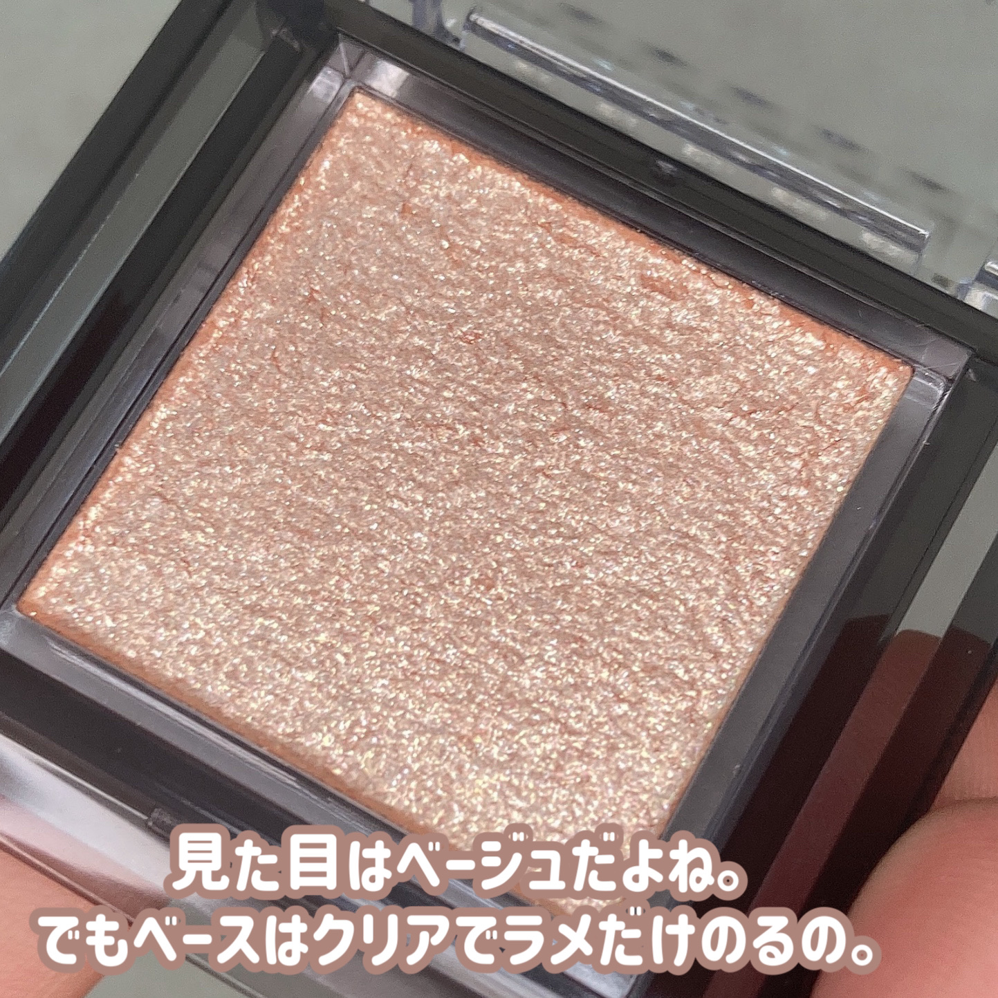 - まばゆい輝き×うるみツヤの高密着ラメシャドウ。 輝度の高いガラスパール・偏光パールを配合。透明感のあるパールを採用し、アイシャドウの色を活かしたまま濡れたようなツヤと輝きをプラスした仕上がり。しっとり柔らかなテクスチャーで高密着なのに、伸ばすとサラッとした使用感で粉飛びしにくい。5種の保湿成分(ヒアルロン酸Na、ホホバ種子油、オリーブ果実油、マカデミア種子油、スクワラン)配合。 肌馴染み抜群のベージュカラー。 リッチな輝きをプラスし華やかで上品な目元に。