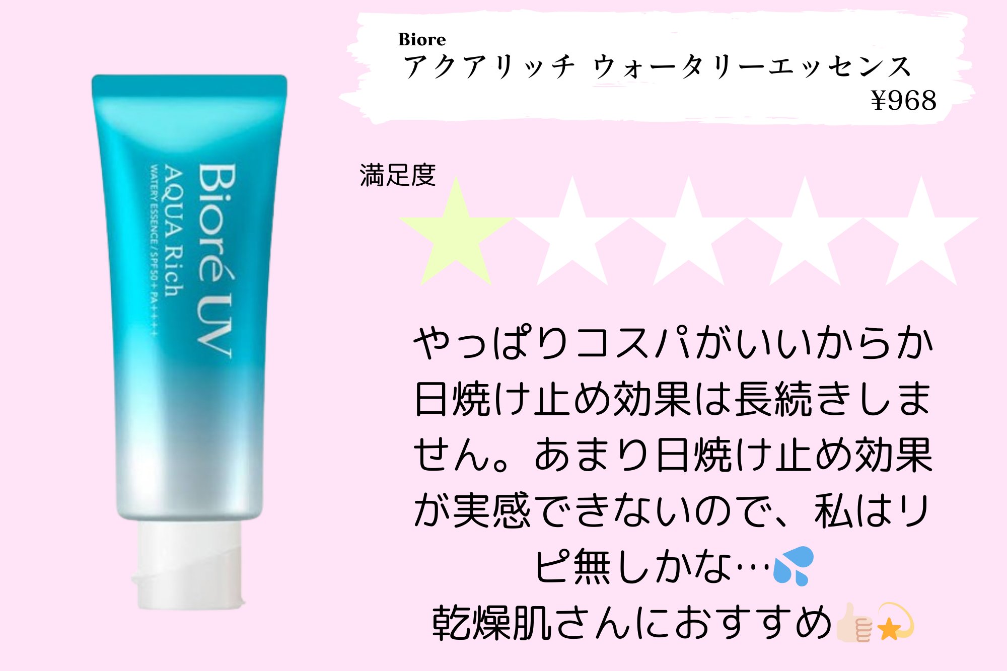 ビオレ ビオレUV アクアリッチ ウォータリーエッセンス | 968円 |