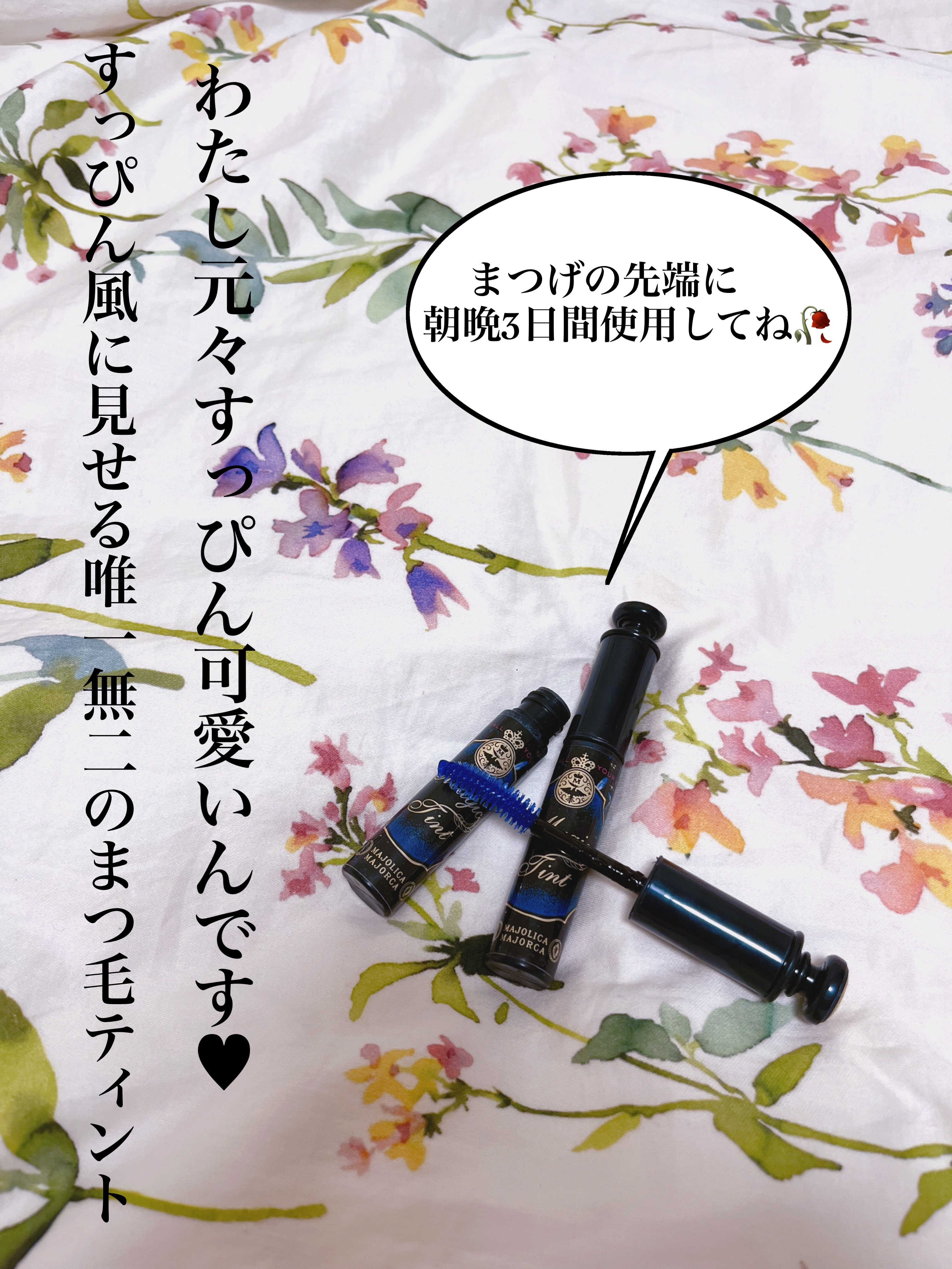 見えないまつ毛を染めて目力アップ、まつ毛ティントです💙 魔法の3days*で目力アップ!まつげの先端は透明で目に見えにくいため、“魔法の青”のラッシュティント成分でまつげを染めて驚きのすっぴん美ロングまつ毛に。 このティント効果がずっと持続はしないので1週間に1回ペース(連続3日間)で使用すると染まった効果が持続しやすいそうです👀💙