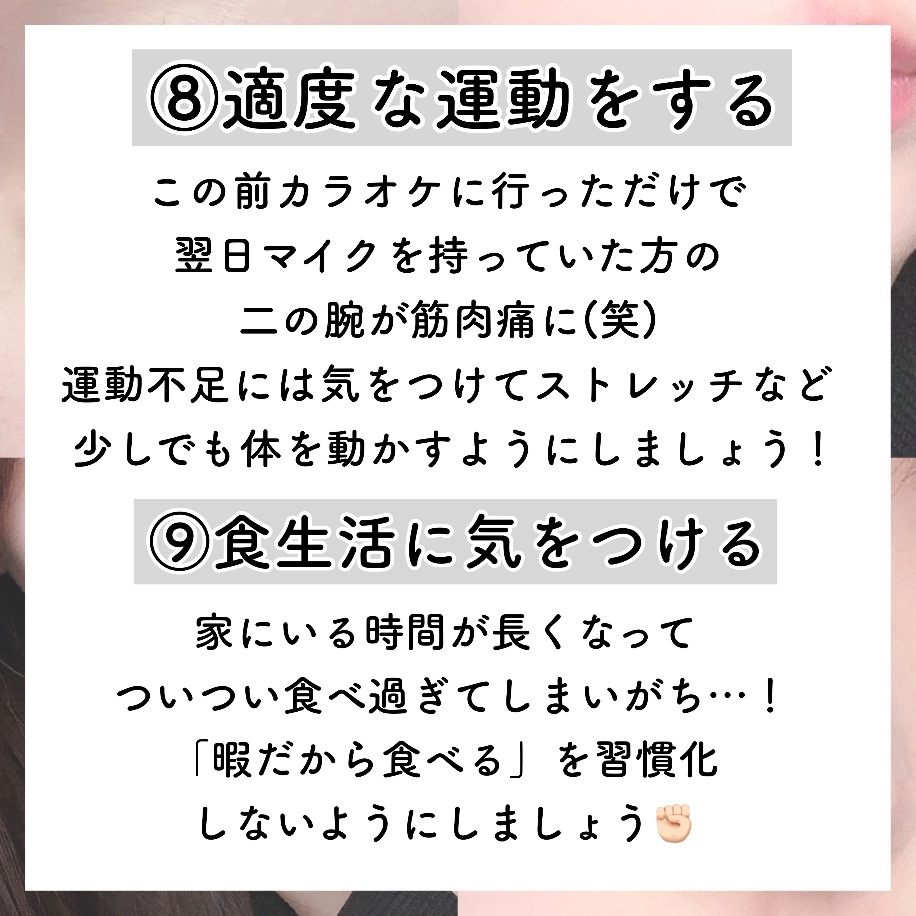 10個もまとめてくれるとありがたすぎる🥹🎶 夏休み夜更かしめっちゃしちゃう👊🏻💧 気をつけないとだよね! たしかに焼けたねって言われると萎えるわ🤦🏻♀️😖 今日も参考になりすぎた💗💗 即保存!