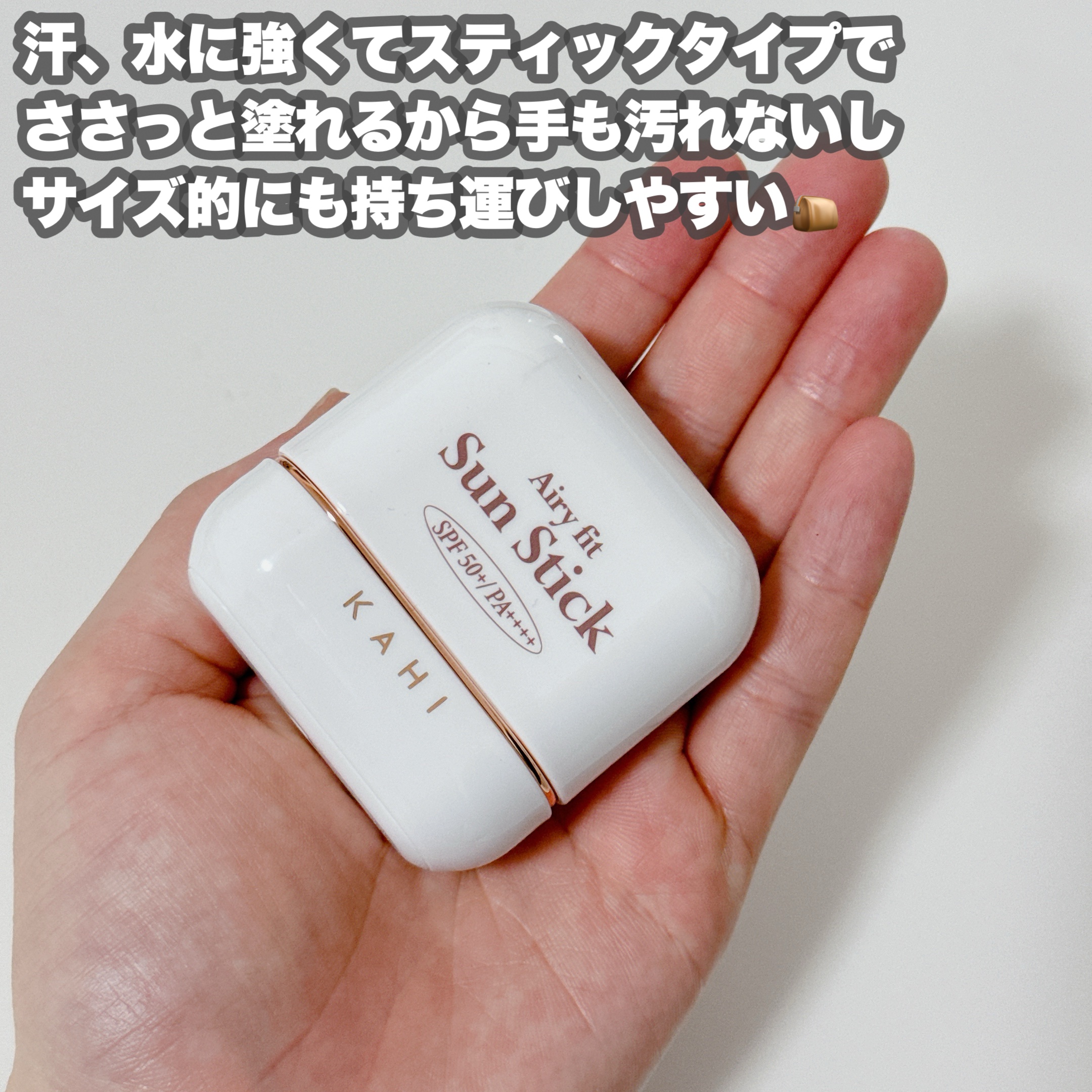 KAHIエアリーフィットサンスティックSPF50+/PA++++美白・シワ改善・紫外線カットの3つの機能を兼ね備えた日焼け止めスティック◡̈汗や水にも強い処方になっているみたいです。日焼け止め特有のベタつき、きしきし感、白浮きなしです。フラワ...