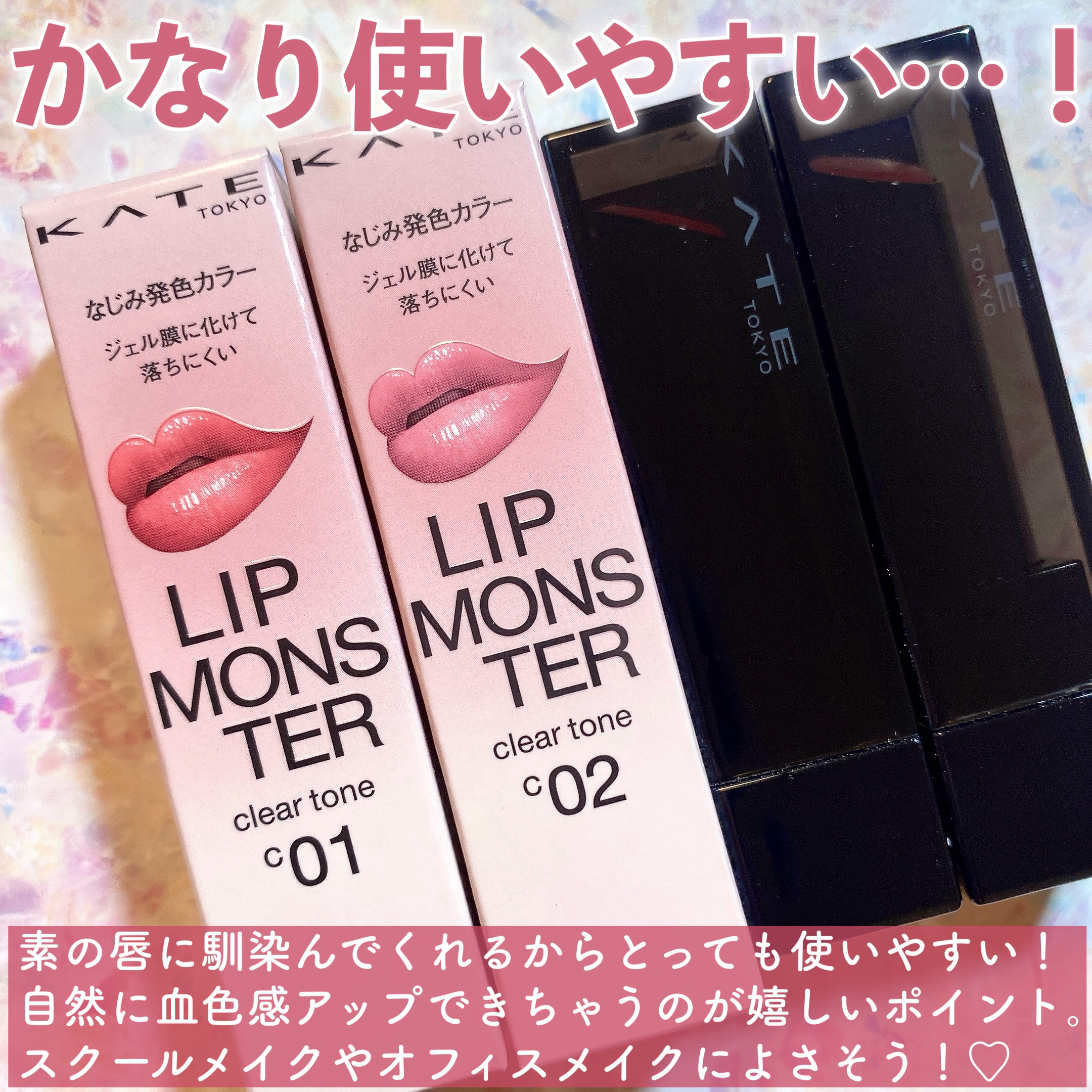 ◯KATEリップモンスタークリアトーンC02 肉色モンスターシアーなスモーキーピンク系💕『発色を抑えたなじみ発色カラーが唇の色と同化。長時間色持続で、落ちにくい。』♡全3色♡保湿(←個人的にはめちゃくちゃ保湿されてる感じというより、リプモンと...