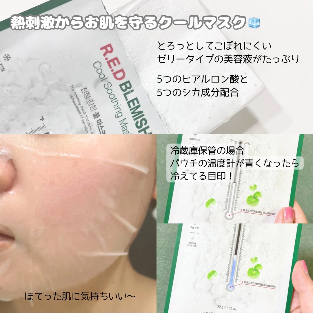 肌の温度を下げるクーリングマスクパック ✅ 5種類のシカ成分▶︎ 肌を落ち着かせる ✅ 5種類のヒアルロン酸▶︎水分保湿 ひんやり気持ちいい。 パックしている間、ずっとひんやり。 ✅赤みが出ている肌、火照っている肌がやさしく落ち着く。 ネバネバ、トロトロの美容液。 パック自体、そして、パッケージに残った美容液をなじませると、水分でモチモチ。