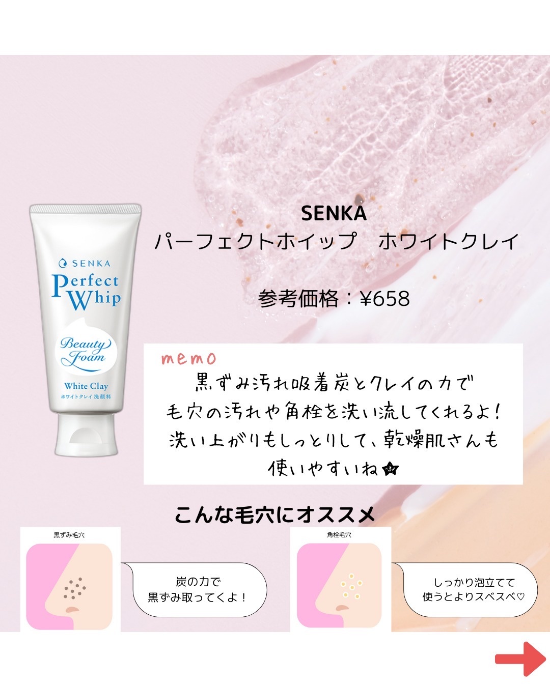 1番好きなのはホワイトクレイ🩵 定番のパーフェクトホイップと使用感自体は変わらないのに、若干ではあるけど毛穴ケアされてるところが好き😊 みなさんの参考になれば嬉しいです✋